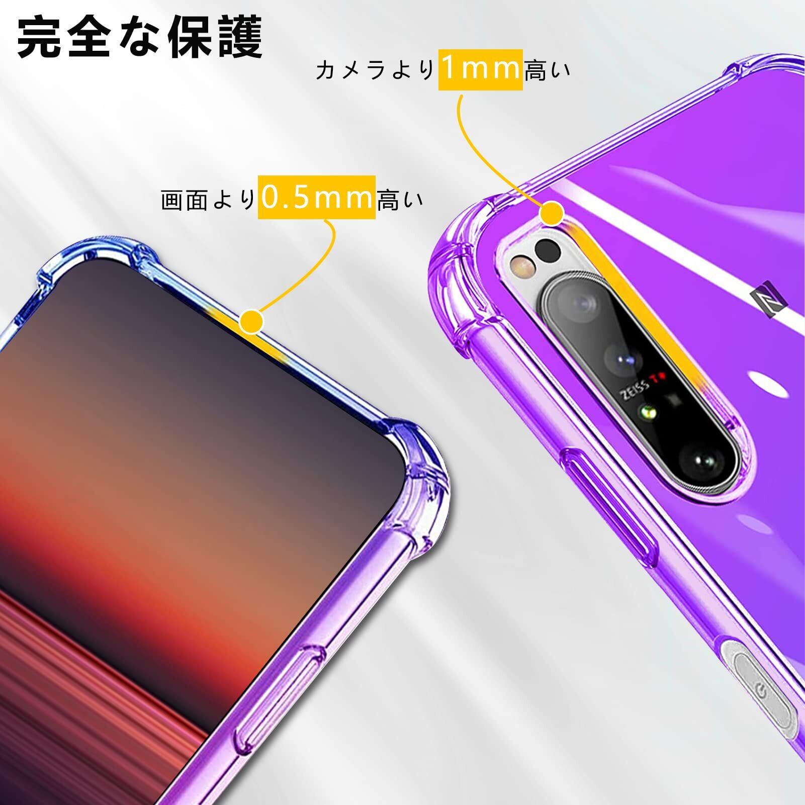 【人気商品】Xperia 5 ケース クリア 薄型 グラデーション色 ケース SO-01M SOV41 901SO ケース 軽量 tpu 耐衝撃 スマホケース 透明 米軍MIL規格取得 おしゃれ 黄変防止防塵一体型 人気 エクスペリア 5 携帯カバー 紫/ブルー MD-JBK-007-03 | gsmshop