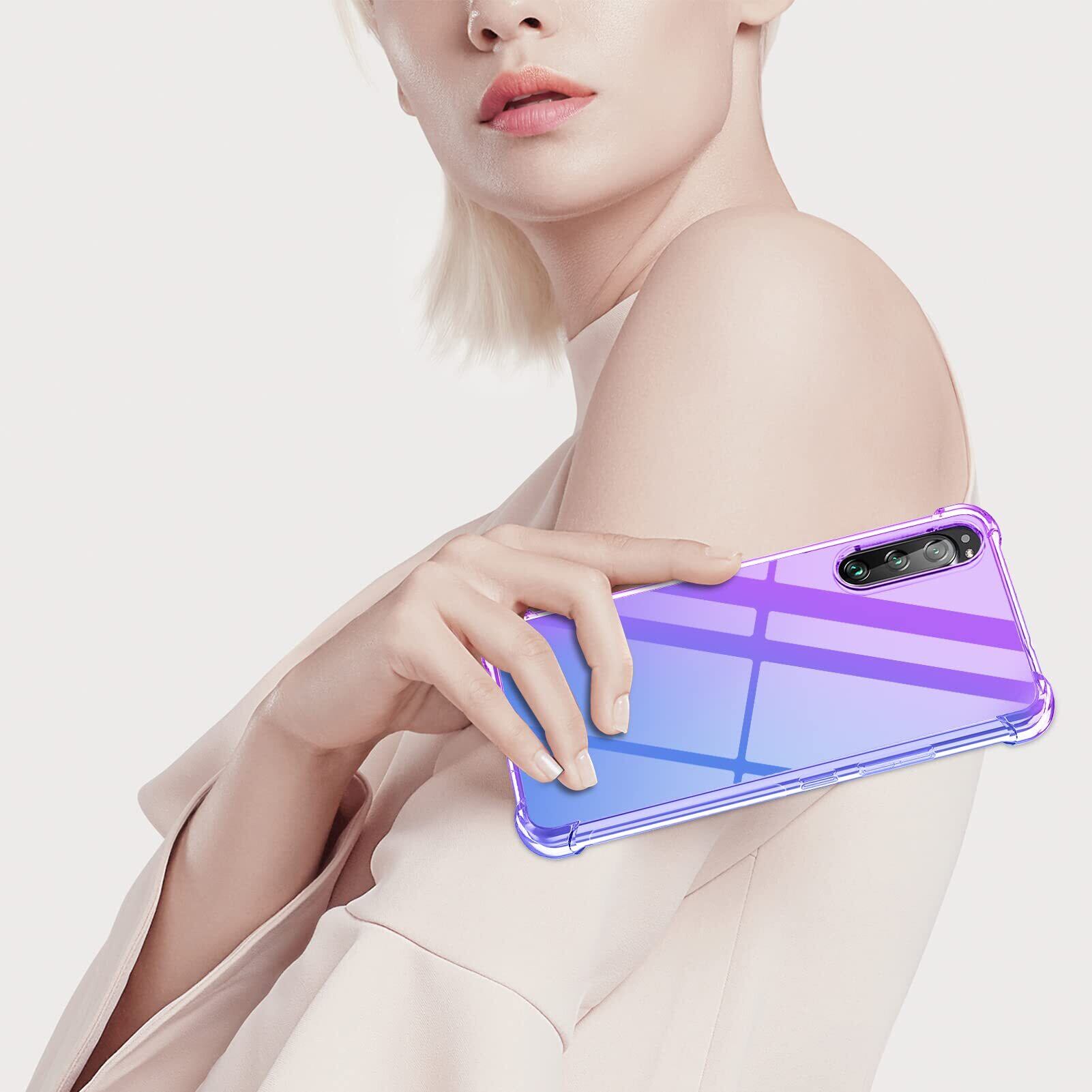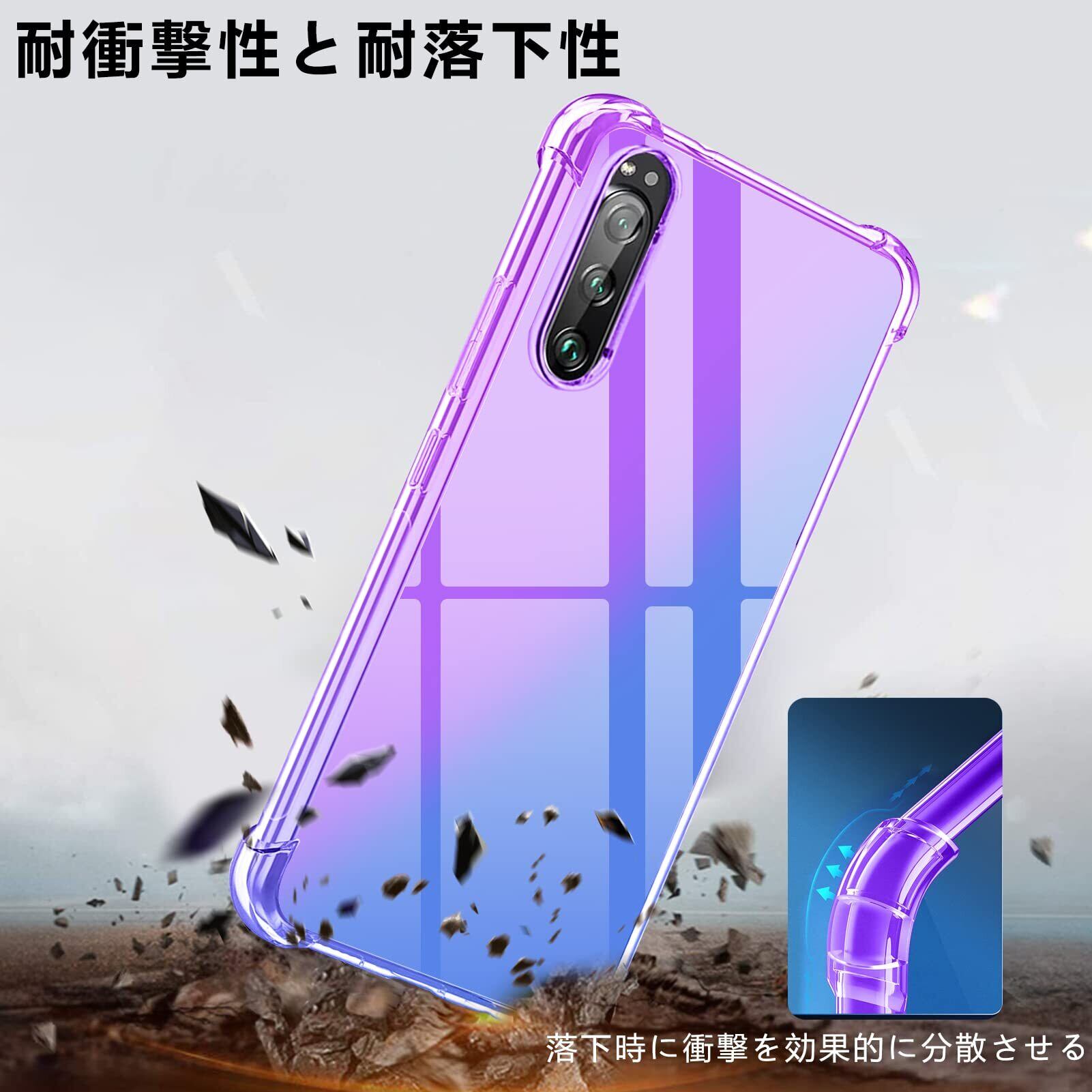 Xperia 5 ケース クリア 薄型 グラデーション色 ケース SO-01M SOV41 901SO ケース 軽量 tpu 耐衝撃 スマホケース 透明 米軍MIL規格取得 おしゃれ 黄変防止防塵一体型 人気 エクスペリア 5 携帯カバー 紫/ブルー MD-JBK-007-03