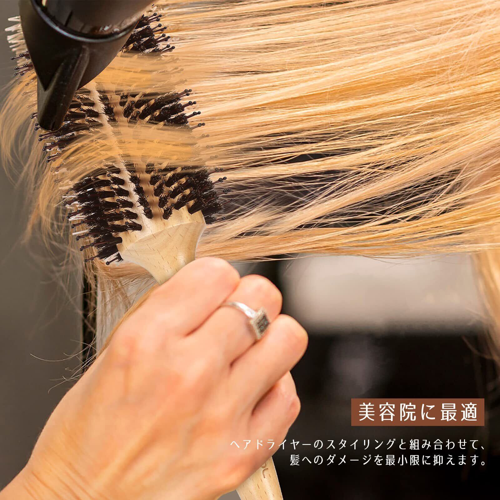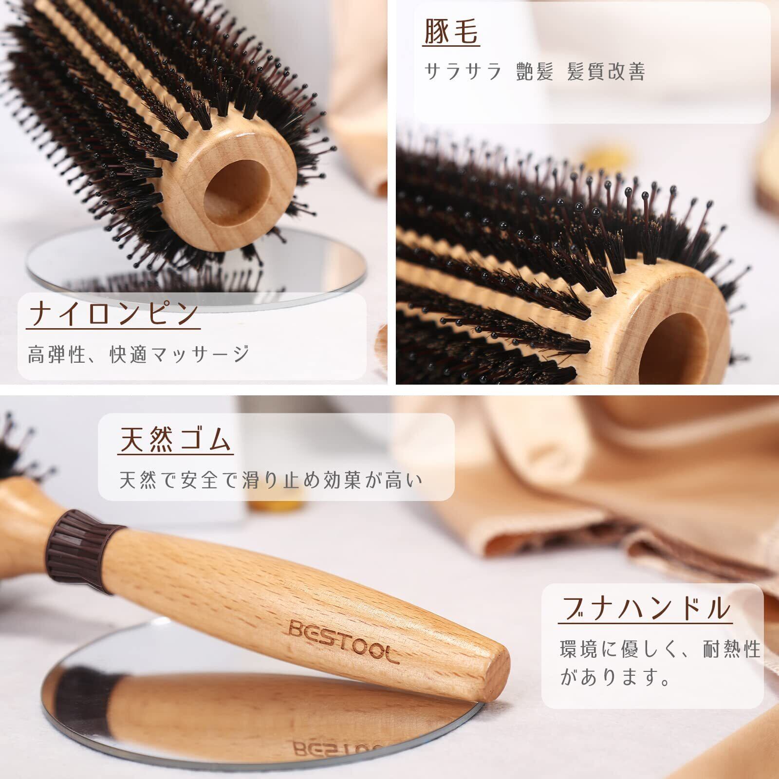 BESTOOL 豚毛 ロールブラシ カールブラシ ブローブラシ ヘアブラシ くし 木製 櫛 ヘアケア レディース メンズ 巻き髪 耐熱 人気 艶髪 (XL)