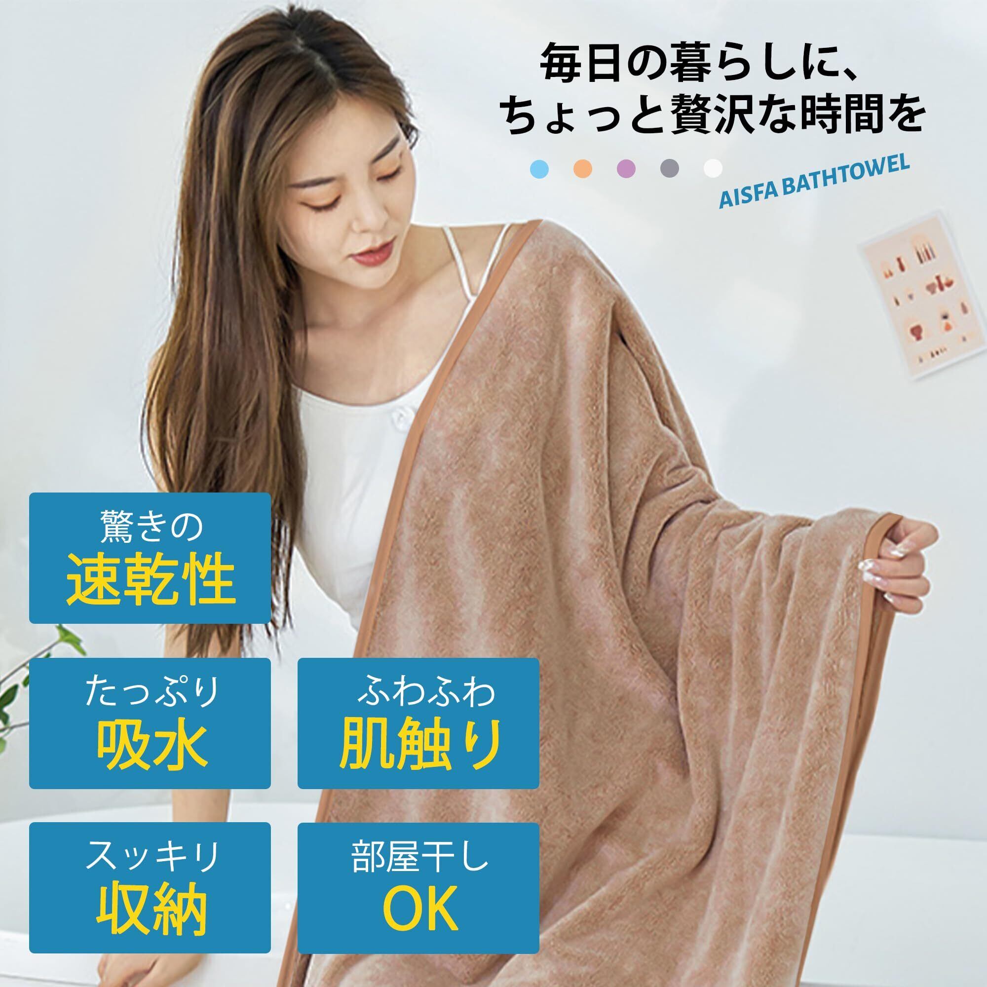 【人気商品】AISFA バスタオル マイクロファイバー 大判 ホテル仕様 バスタオルセット ホテルスタイルタオル ループ付き 浴用 プール用 家庭用 業務用 吸水 速乾 抗菌 防臭 ふわふわ 柔らかい (5色-F, 5枚組/バスタオル) | gsmshop