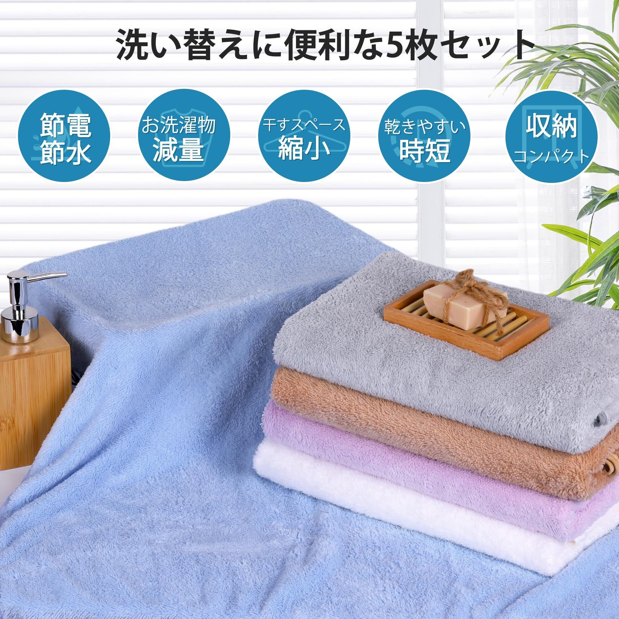 AISFA バスタオル マイクロファイバー 大判 ホテル仕様 バスタオルセット ホテルスタイルタオル ループ付き 浴用 プール用 家庭用 業務用 吸水 速乾 抗菌 防臭 ふわふわ 柔らかい (5色-F, 5枚組/バスタオル)