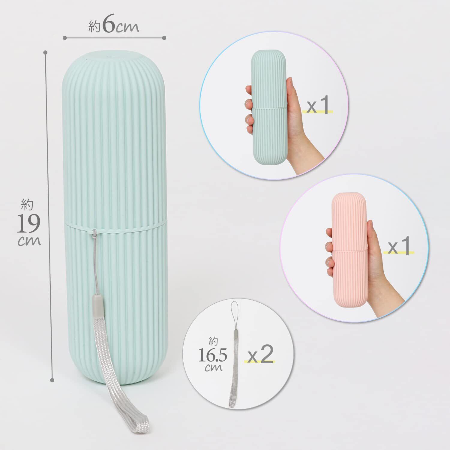【商品仕様】:サイズ/ケース:約直径6×高さ19cm・ストラップ:全長約16.5cm、内容/ケース2個(薄ピンク色×1・水色×1)・ストラップ2本、カラー/ケース:薄ピンク色・水色・ストラップ/グレー、材質/ポリプロピレン