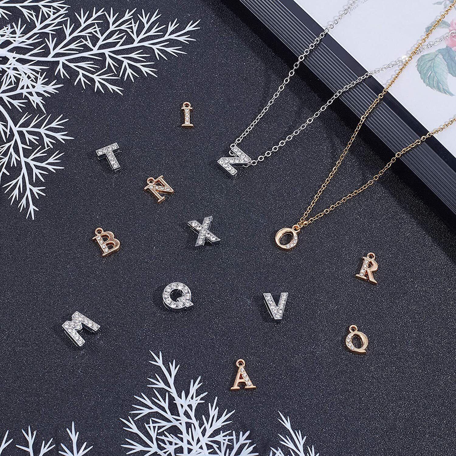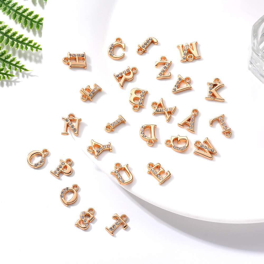 アルファベット チャーム 26個セット アクセサリー パーツ ネックレス ブレスレット 英字 ローマ字 基礎パーツ ジュエリー作り デコキット クラフト手芸 手作りキット DIY飾り物