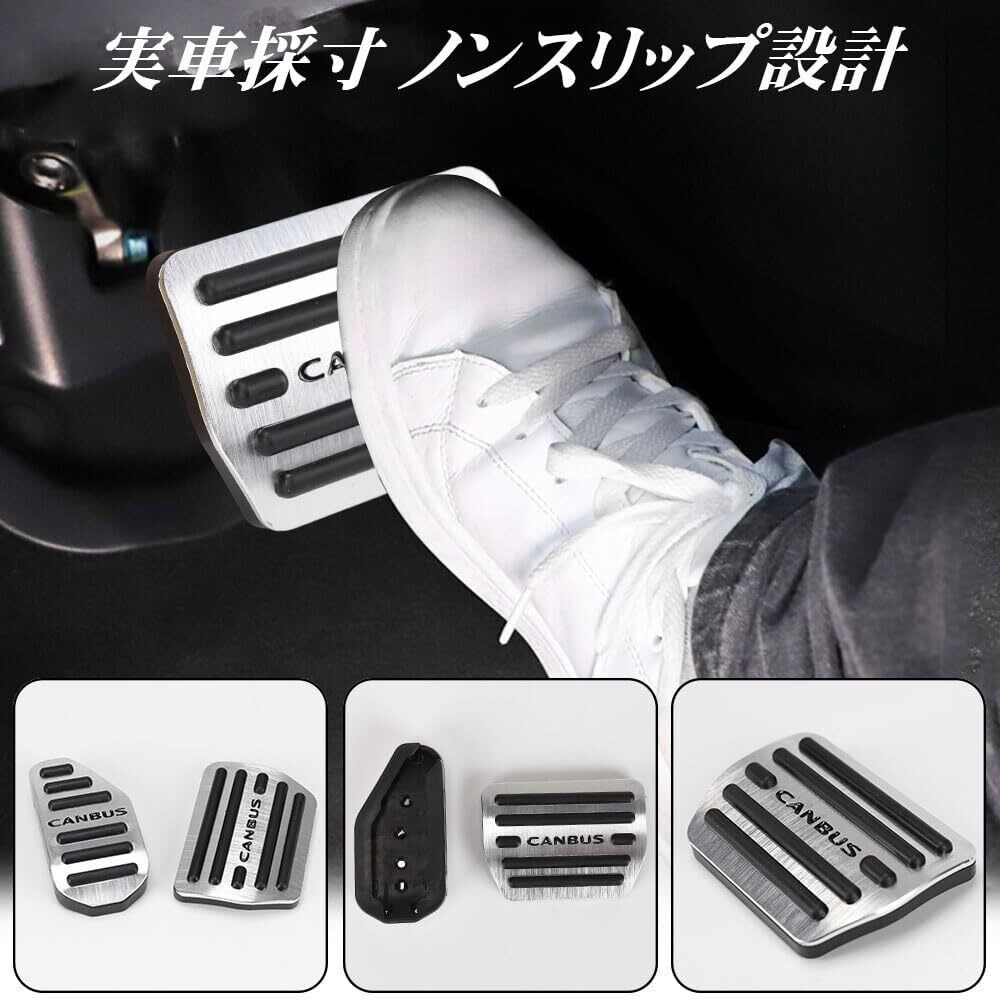 LEXLEYS「最新型」ダイハツ ムーヴキャンバス CANBUS LA850系(2022年7月~) アルミ ペダル アクセル ブレーキ カバー 工具不要 滑り止め付 被せる ゴム カスタムドレスアップ パーツ(シルバー)