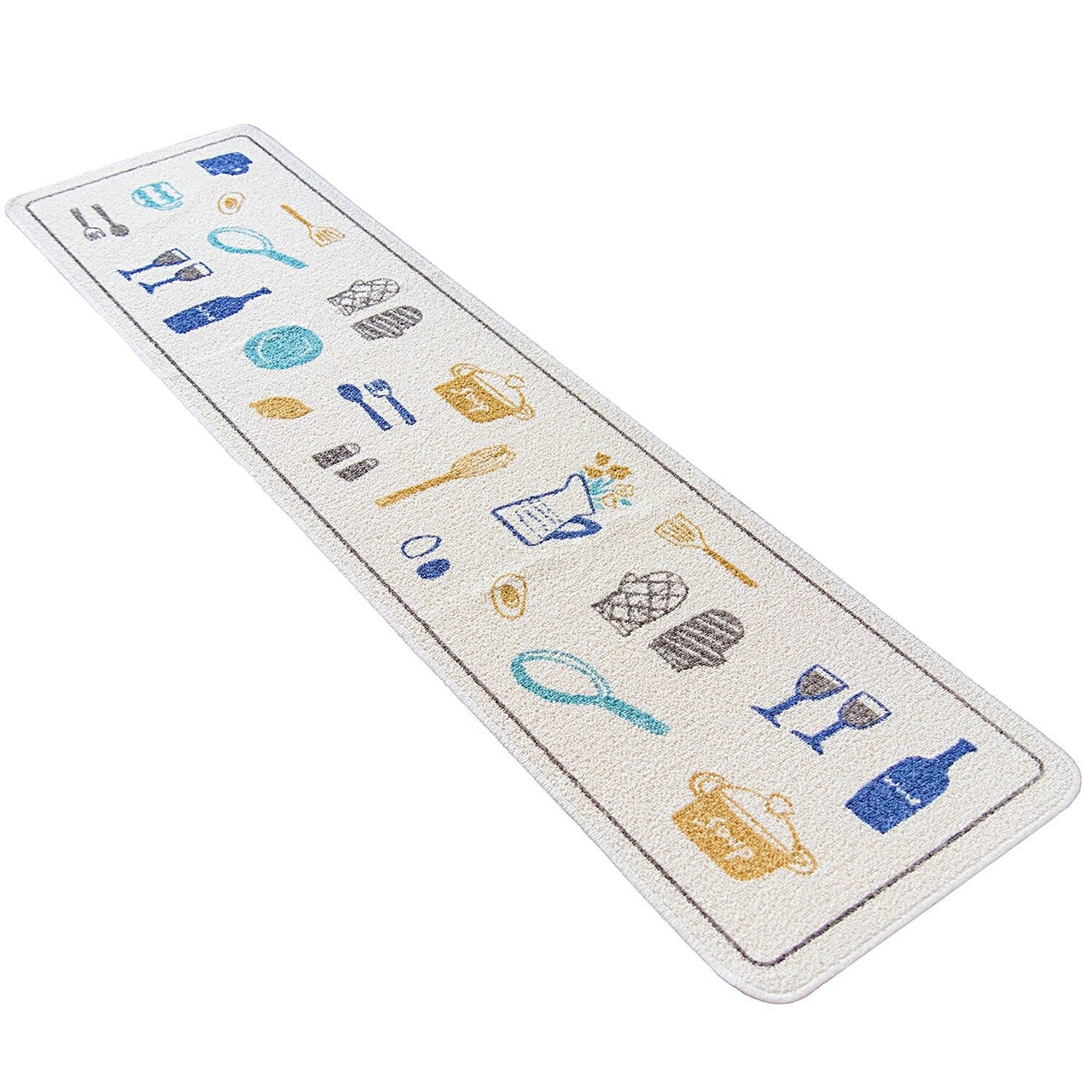 オカ(OKA) ビストロ キッチンマット 約45cm×180cm ブルー (台所マット 日本製 すべり止め)