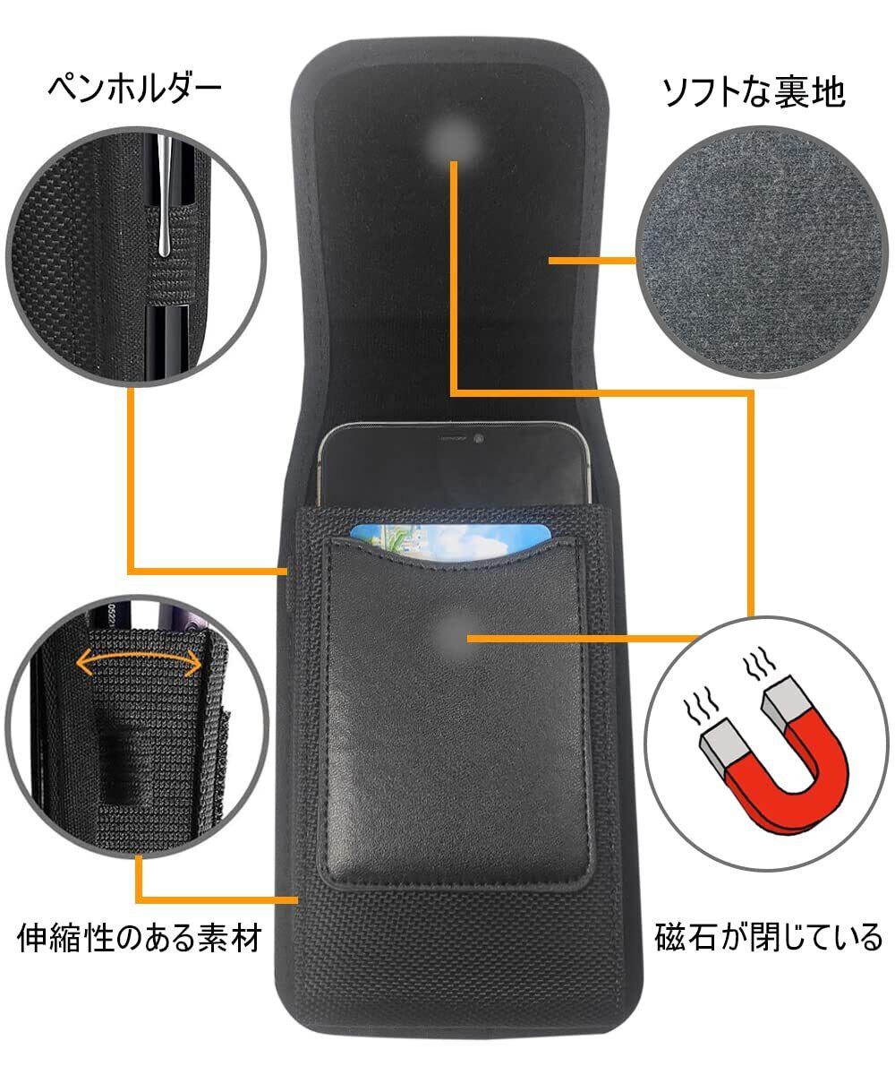 スマホ ポーチ メンズ QBeau ベルト通し付き 携帯ケース マグネット開閉 作業用 iPhone 15/14/13 mini/11/12 Pro/SE 2020,iPhone 13 Pro/13/13 Pro Max/Xs/Xs Max/XR/X,iPhone 7/8/Plus,Galaxy Note10/Note7/S10 4.7-5.5インチまでのスマホ対応