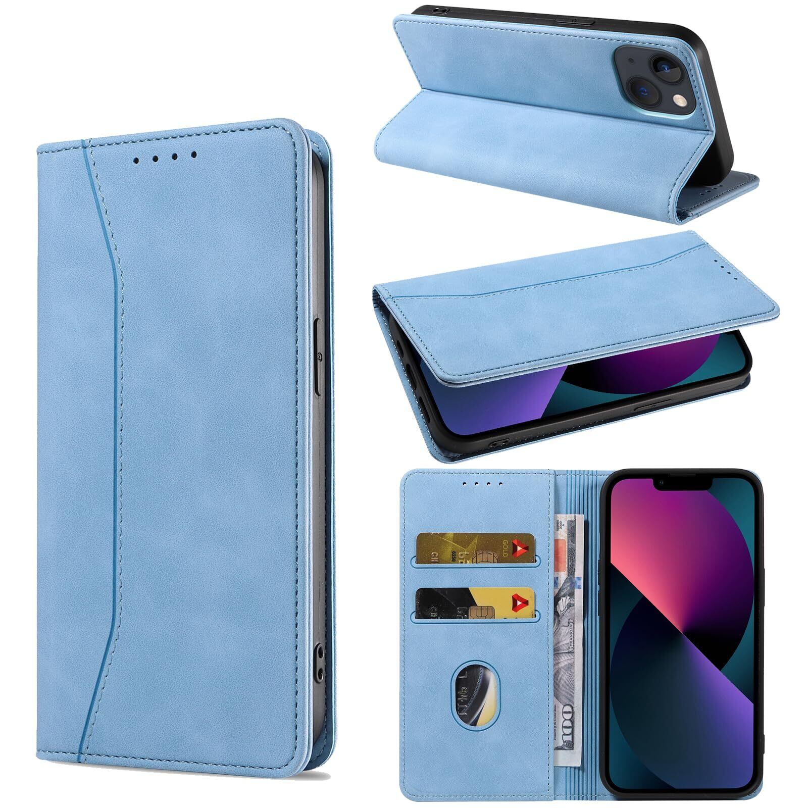 KWATUNG アイフォン 14 ケース 手帳型 おしゃれ iPhone 14 手帳型ケース 肌感レザー iPhone 14 カバー 内蔵マグネット耐衝撃 iphone14ケース 手帳型 スマホケース iphone14 手帳型 カード収納 スタンド機能 あいふぉん14ケース手帳型 全面保護 アイフォン 14 手帳型 ケース【6.1インチ】 ライトブルー