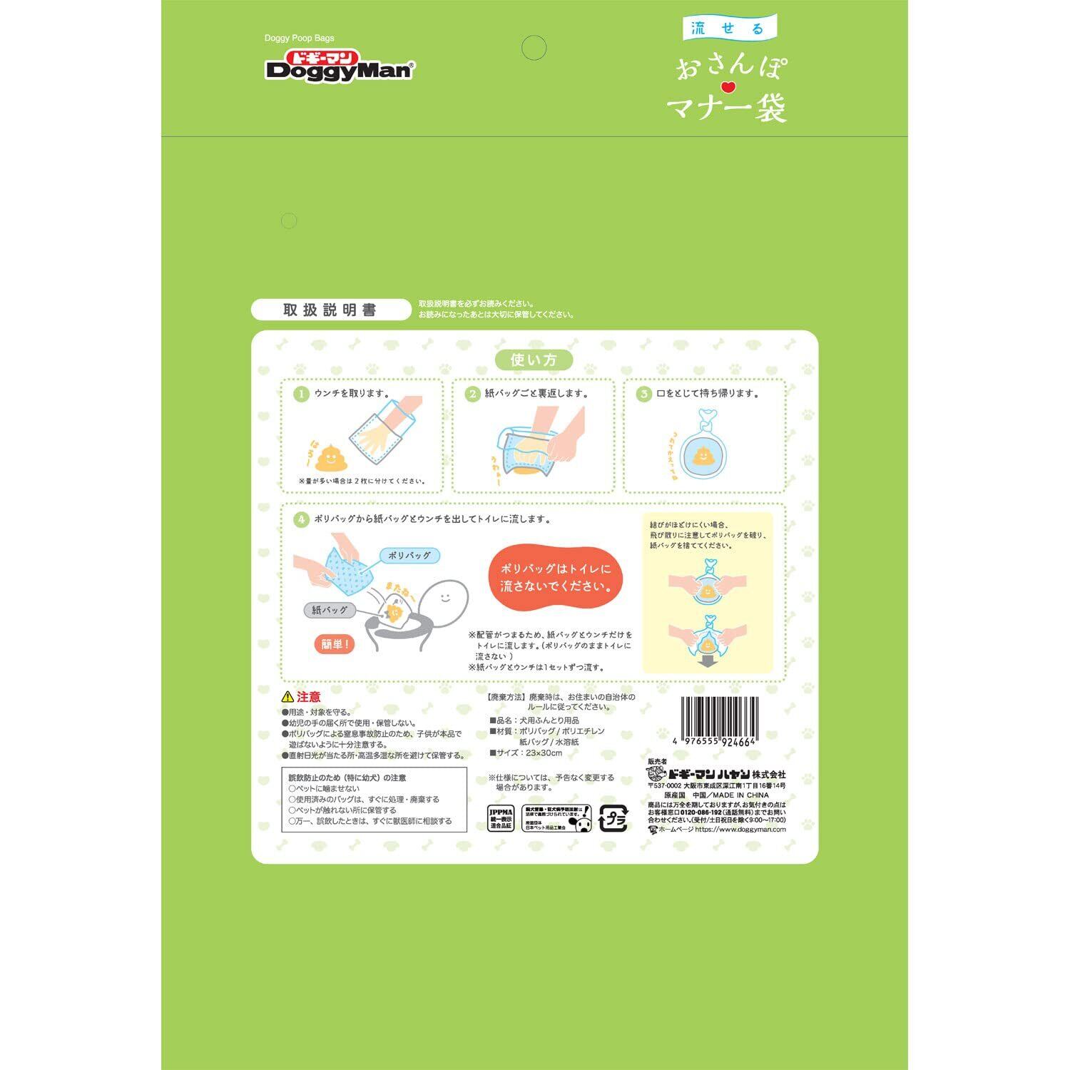 おでかけの必需品(散歩に・旅行に・アウトドアに)/散歩中のウンチをすっきりお片付け/サイズ20×30cm(ポリバッグサイズ:19×30cm×マチ巾5cm/紙バッグサイズ:23×20cm)【原材料】ポリバッグ:ポリエチレン/紙バッグ:水溶紙