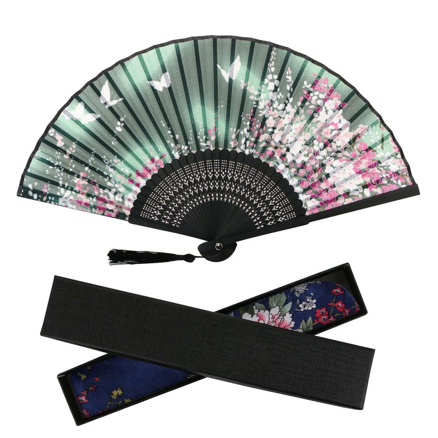 【2022最新】[YOVOY] 扇子 レディース おしゃれ シルク 和風扇子 大きい 短地扇子 女性 花柄 プレゼント 花火大会 浴衣 着物 和装小物 お祭り 猛暑対策 ギフト袋と箱付き 3点セット | gsmshop