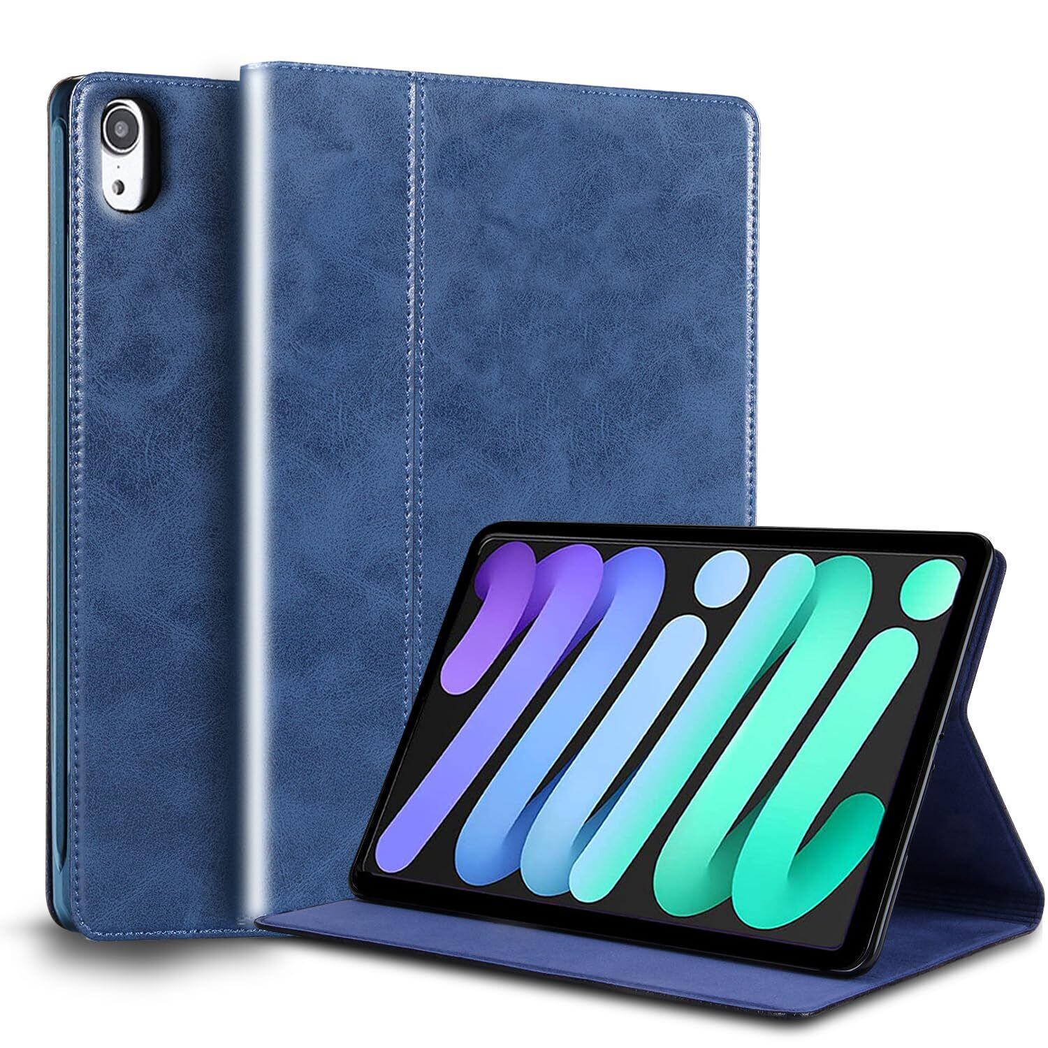 Gexmil ケース iPad Mini 第7世代 A17 Pro 2024, iPad Mini 第6世代 (2021),8.3 インチ,高級レザー製 耐衝撃性 軽量 防指紋 防滑,オートスリープ/ウェイク,アジャスタブルスタンド,ブルー