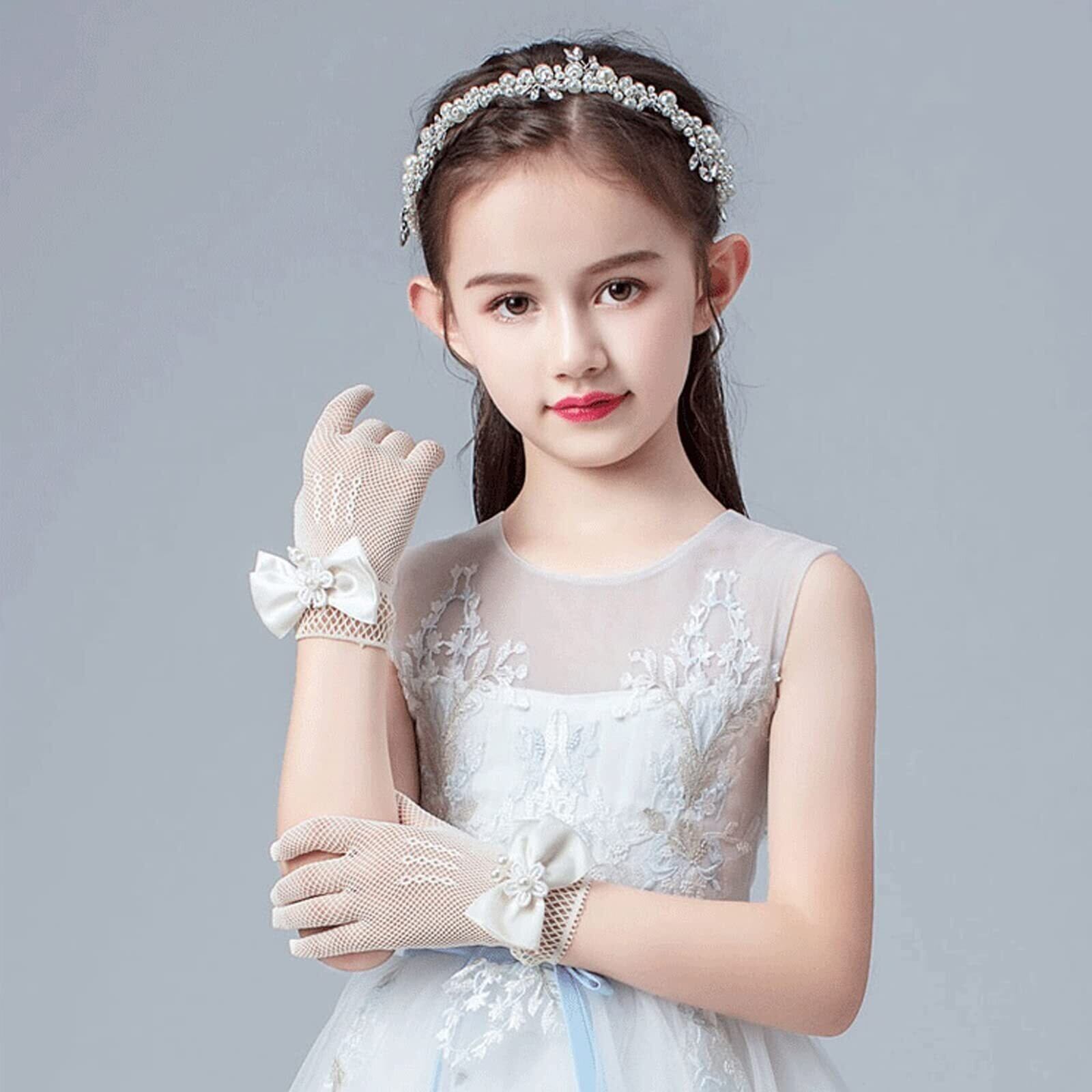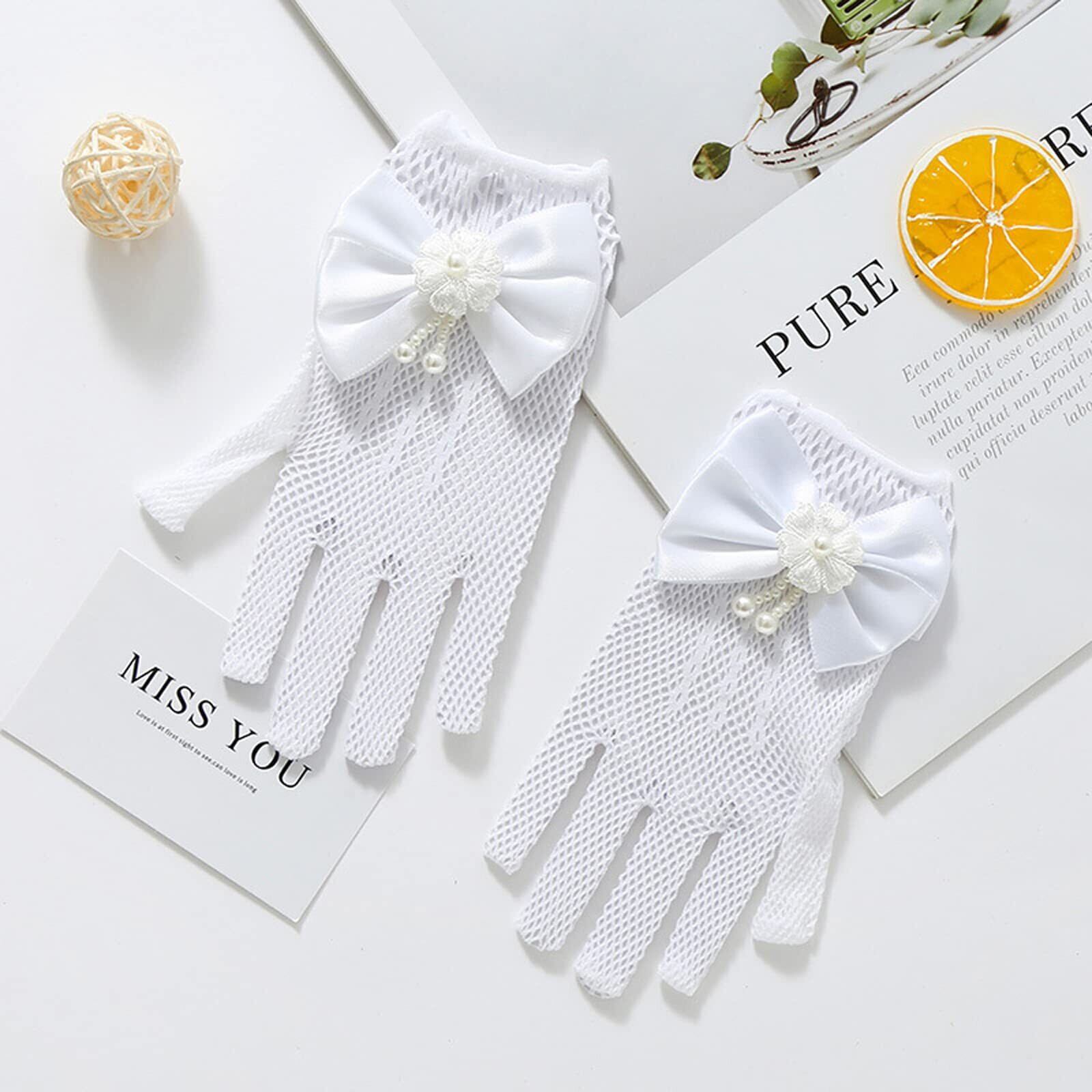 [Kingsie] 手袋 子供 女児ドレス手袋 メッシュ 女の子 ブライダル手袋 薄手 レースメッシュ 可愛い リボン付き 蝶結び おしゃれ レディース ブラック ホワイ メッシュ手袋 アクセサリー