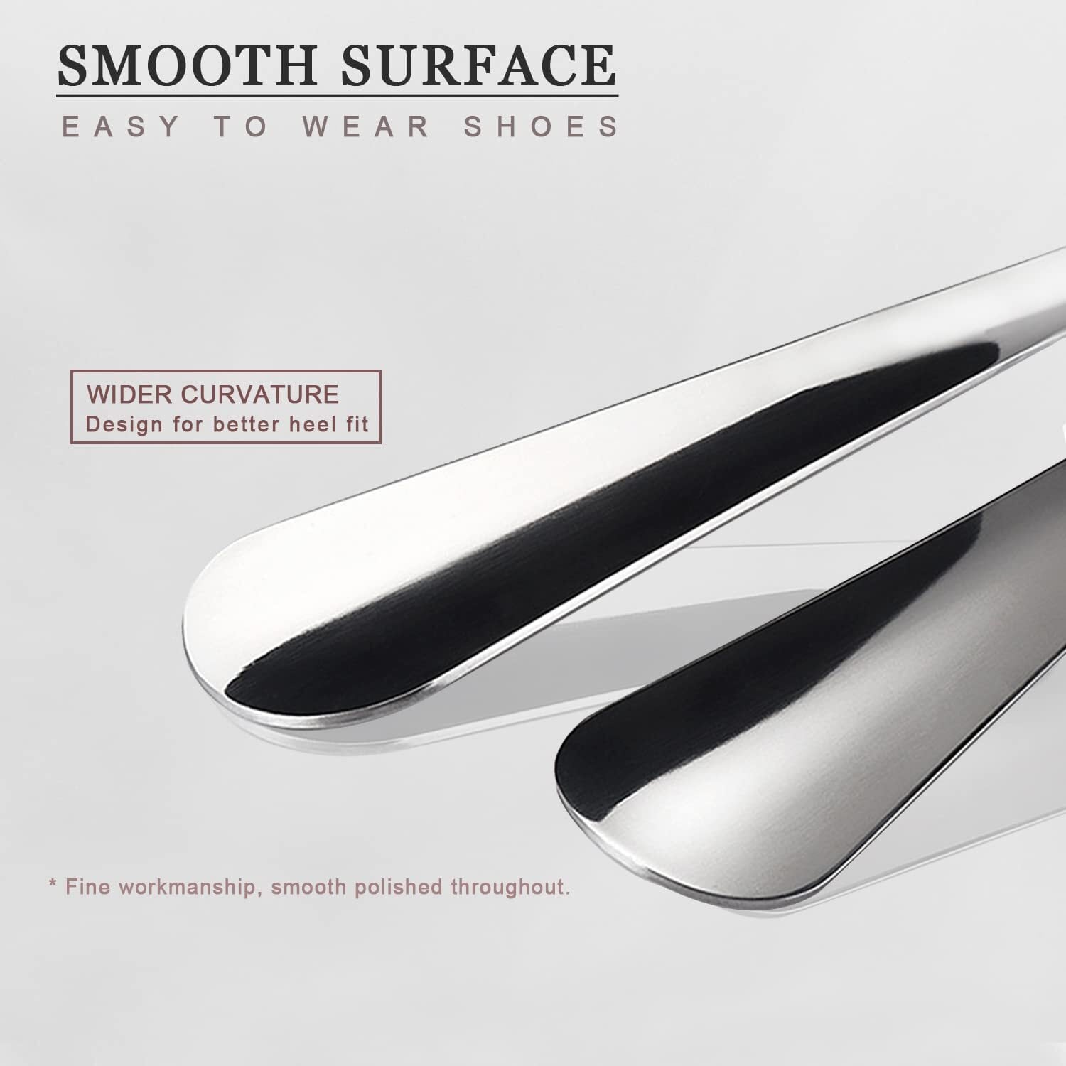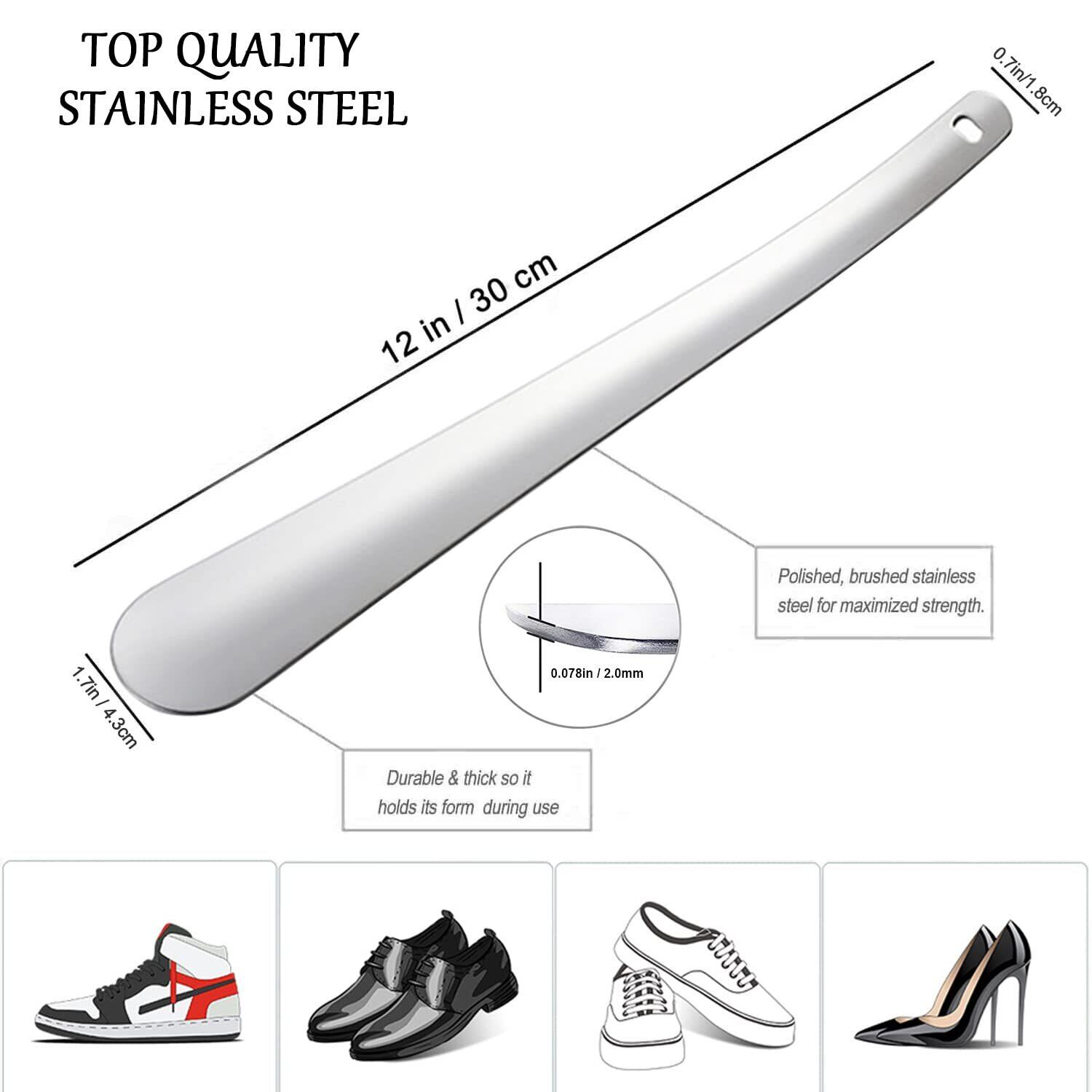 【 高耐久デザイン 】 長さ12インチ、ステンレススチール製。このシューホーンは長持ちします。 プラスチック製の靴ホーンよりも頑丈なこのステンレス スチール シュー ホーン ロング ハンドル セットは、頻繁に使用しても、通常の使用でも強度を維持します。