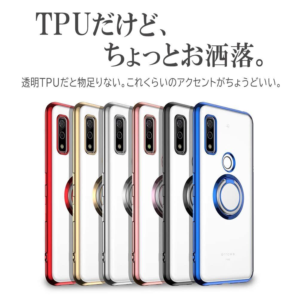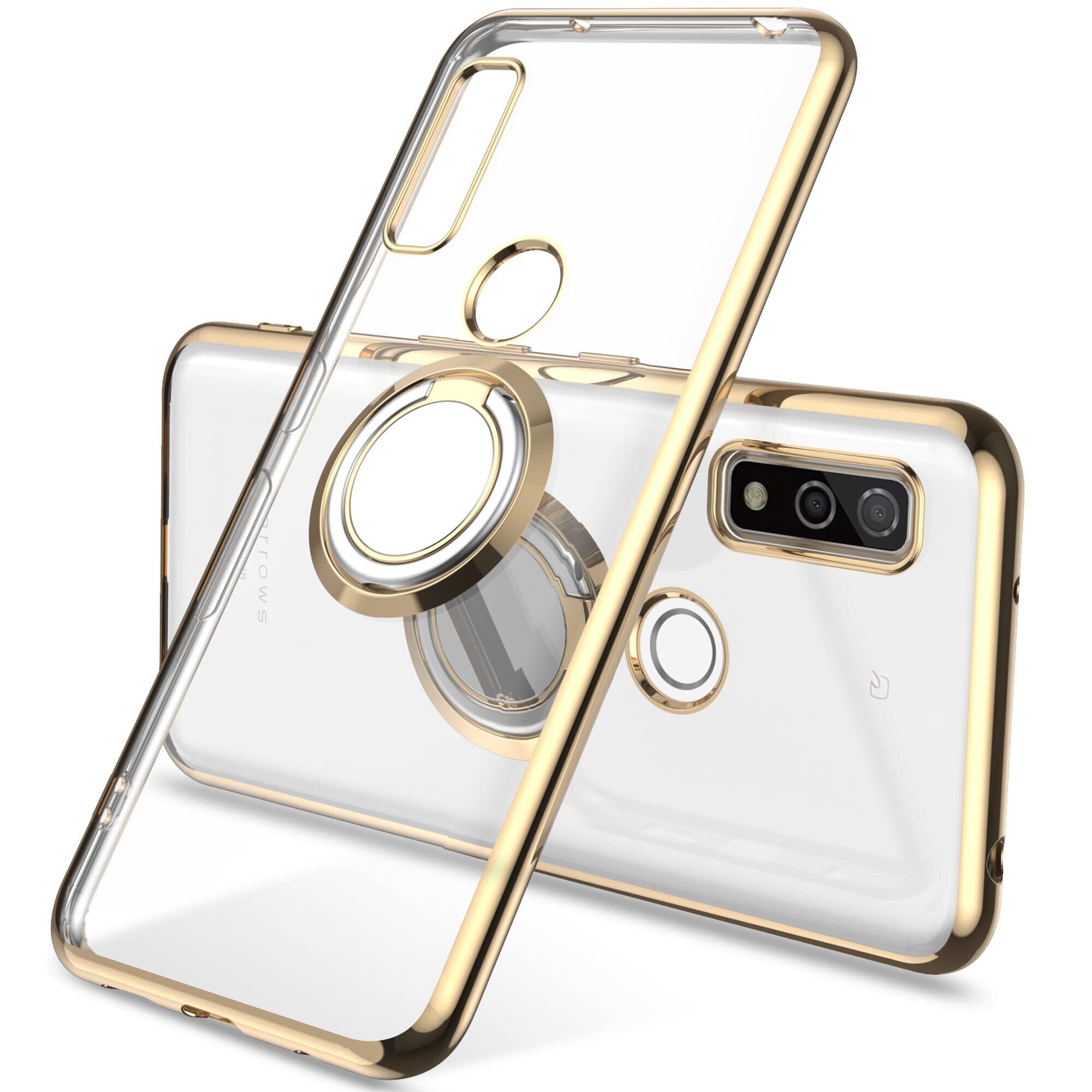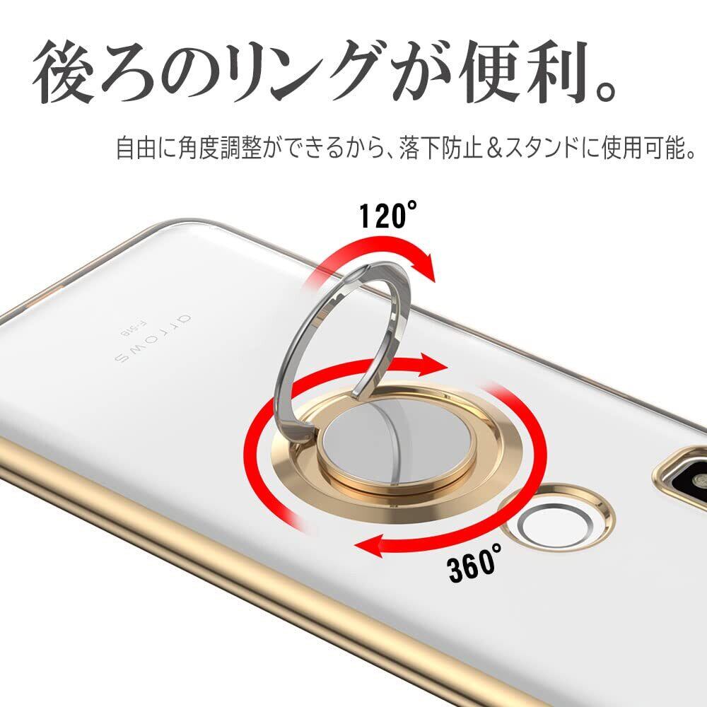 arrows We F-51B FCG01 用 リング付きクリアケース クリア x ゴールド ソフトケース TPU保護ケース スタンド機能付き 360回転 カバー 耐衝撃 透明 TPU 素材 超薄型 背面カバー 超軽量 耐衝撃 落下防止