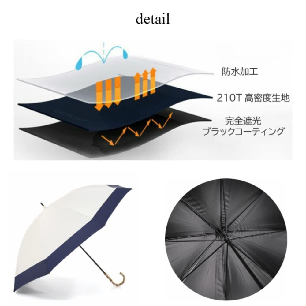 日傘 長傘 完全遮光 UVカット 傘 レディース 撥水 軽量 晴雨兼用 バンブー 持ち手 おしゃれ かわいい 耐風 風に強い 遮光率100% UVカット 率99.9%以上 UPF50+ 【OK basket】