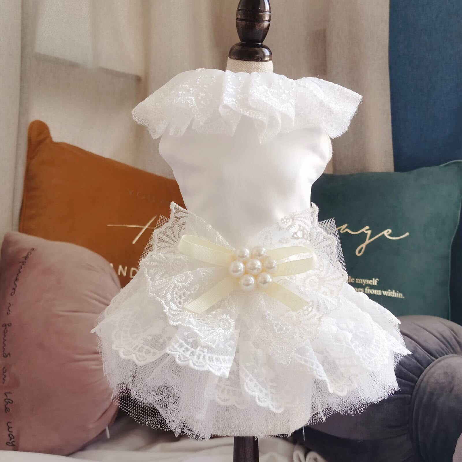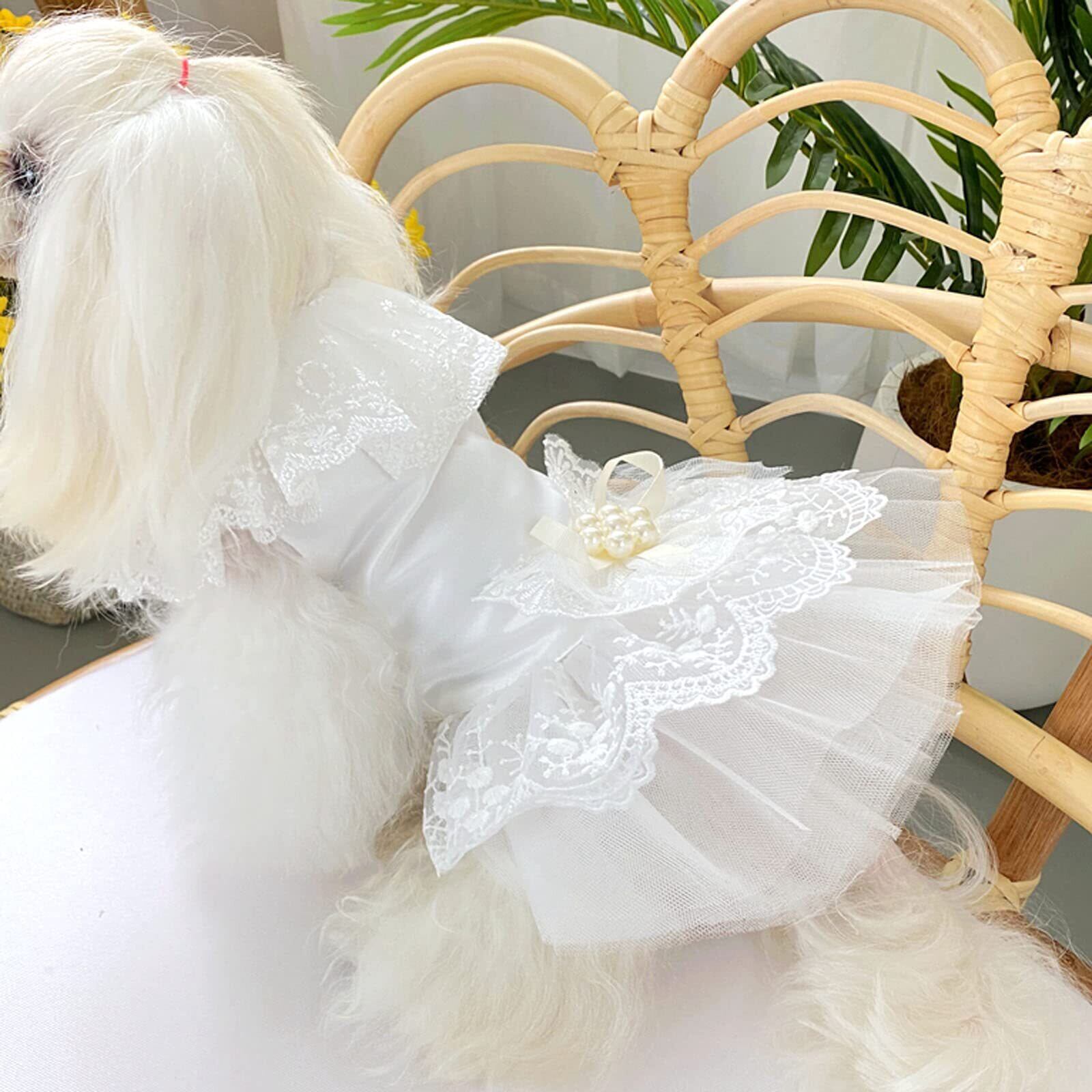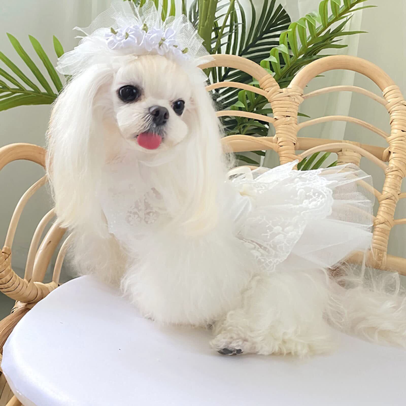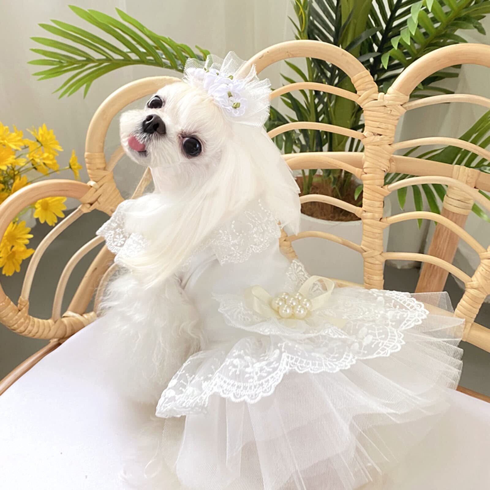 【新春セール】TARATI 犬 ウエディングドレス手作り ペットのドレス 犬のお姫様スカート 豪華 おしゃれ 可愛い 華やか お姫様 プリンセス 結婚式 お祝い 記念パーティー 小型犬 プレゼント M- 体重3kg-4kg ホワイト | gsmshop