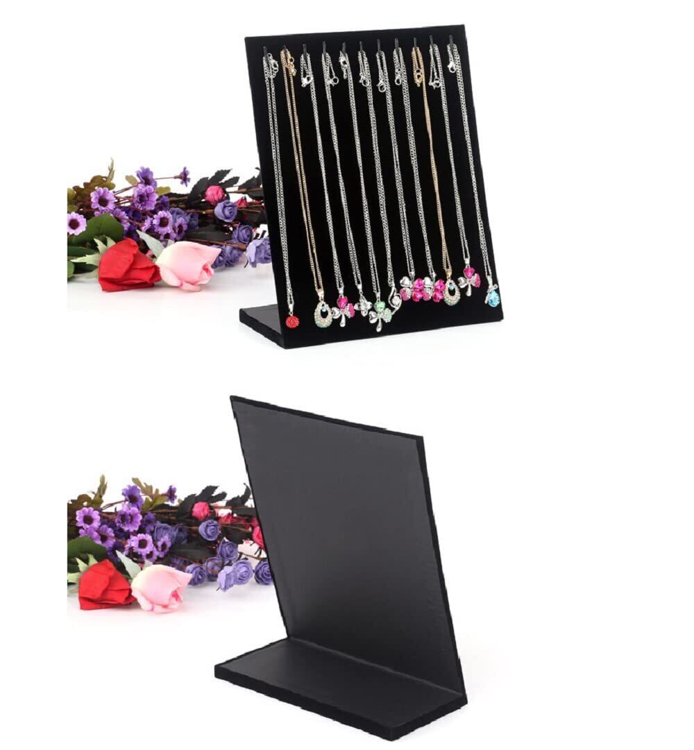 【特価セール】himsyuden ネックレスディスプレイ 11本用 ベロア調 ジュエリー トレイ ネックレススタンド アクセサリースタンド アクセサリー展示 収納 L型 記念日 誕生日 バレンタイン ギフト ネックレス整理 (ブラック) | gsmshop