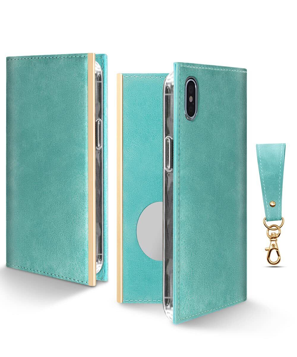 【在庫処分】OCTERR iPhone X/XS ケース 手帳型 手帳 鏡付き マグネット式 スマホケース 財布型 アイフォンXカバー カードポケット スタンド機能 携帯ケース ダイアリーケース PUレザー 女性 耐衝撃 全面保護 ファッション おしゃれ 美しい グリーン | gsmshop