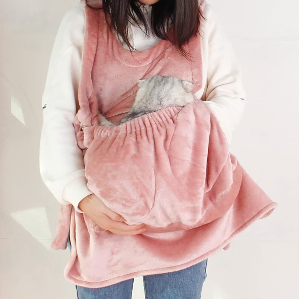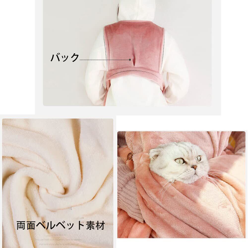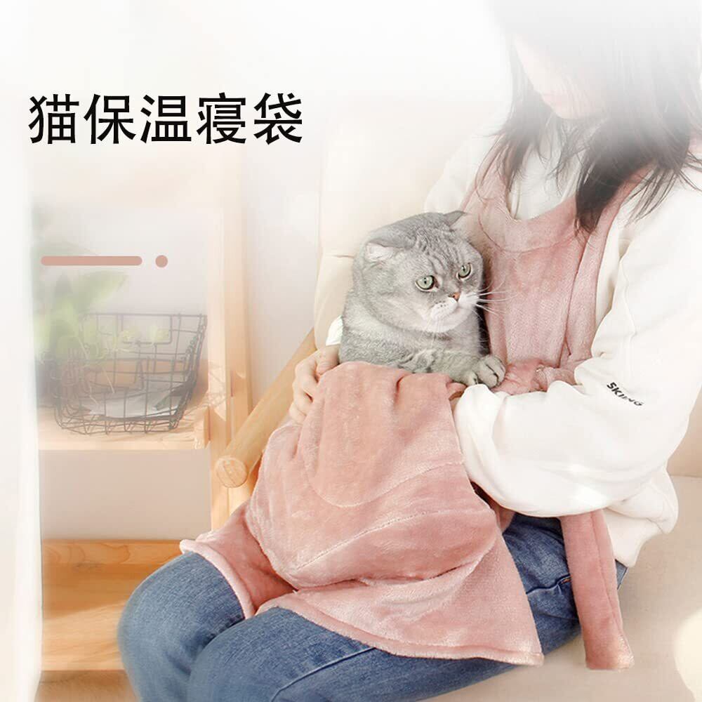 Kadahis ペット猫寝袋 抱っこ用エプロン いつも一緒ポケット 抱っこ紐 ペット寝袋 飛び出し防止 ペット外出用キャリー 暖かい ブランケット 防寒対策 (ピンク)
