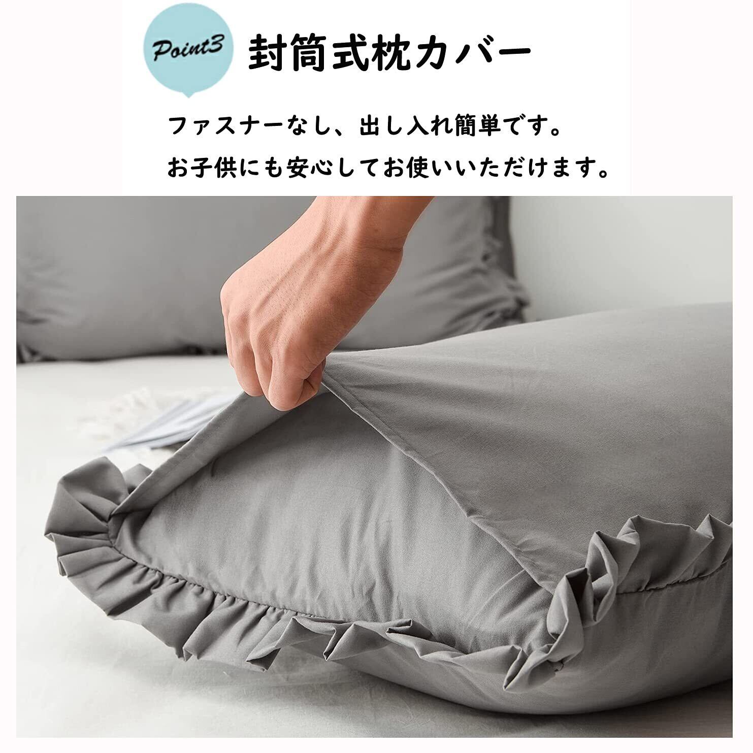 Forhomelife 枕カバー 2枚セット ピローケース 43x63 フリル 封筒式 まくらかばー ピーチスキン加工 抗菌 防臭 洗える かわいい ライトグレー