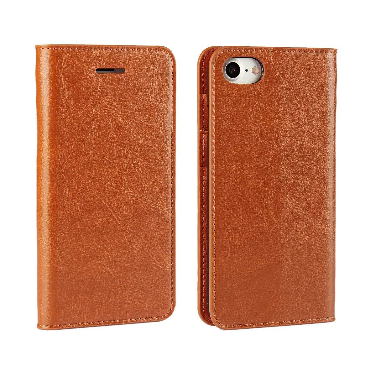 【2022最新】SKIASE iPhone 7/8/SE(第2世代)/SE(第3世代) ケース 手帳型 本革 高級レザー アイフォン7/8/SE2/SE3 通用ケース 携帯カバー 財布型 横置きスタンド機能 カード入れ カード収納 耐衝撃 全面保護 軽量 薄型 落ち着いた色 ライトブラウン | gsmshop
