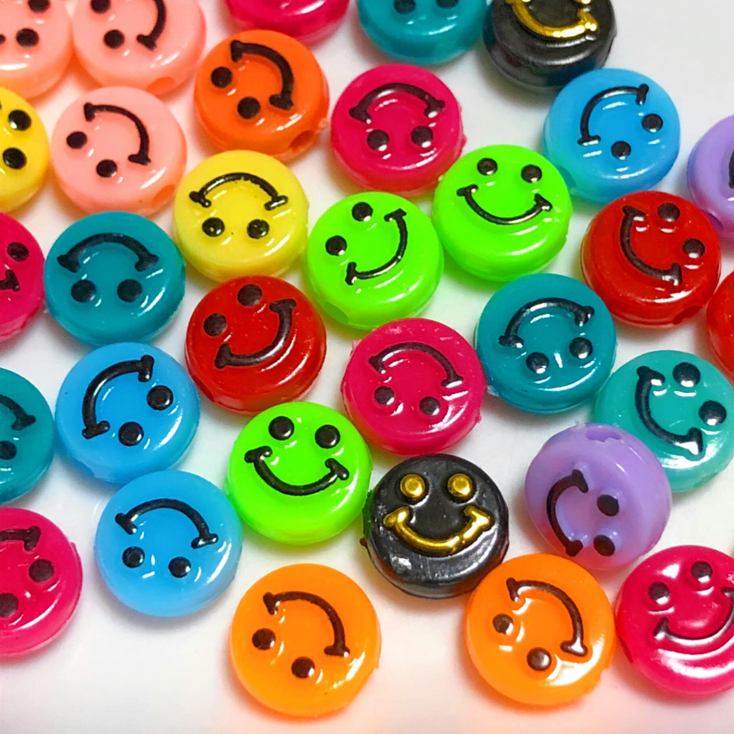 【在庫処分】まみー工房 アクリルビーズ スマイル 直径約10ミリ 約200個 ハンドメイドパーツ アクセサリーパーツ 手芸 材料 ゆめかわいい メルヘン ジェルネイル しゃかしゃか にこちゃん ニコちゃん (カラーMix) | gsmshop