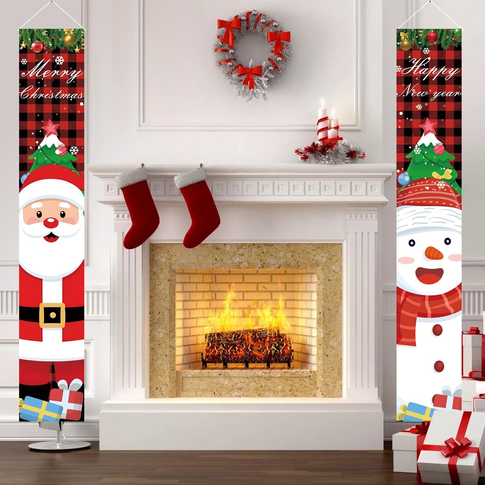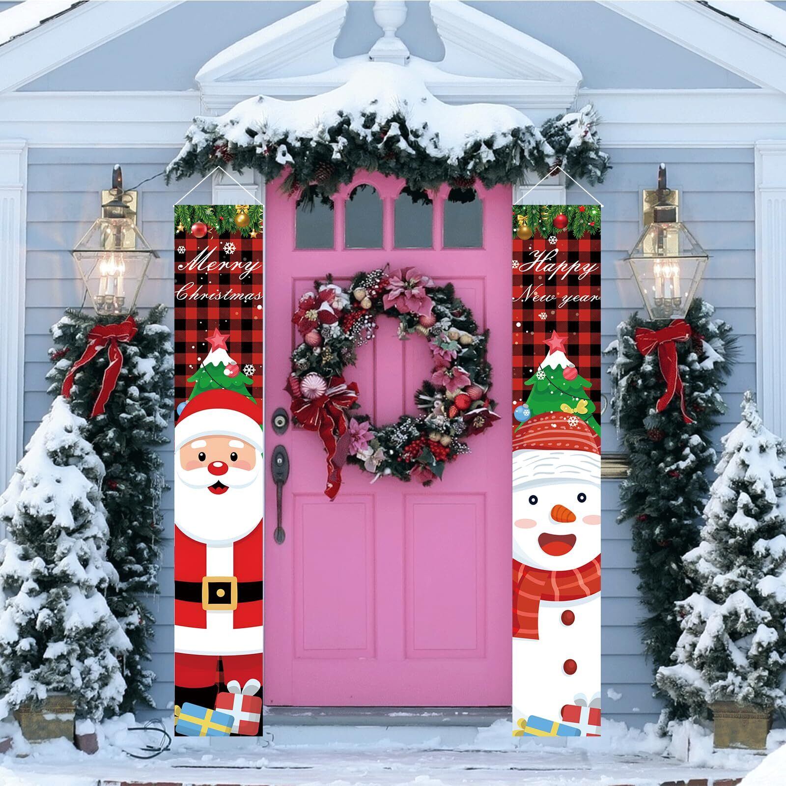 クリスマス玄関飾り:かわいいサンタさんや雪だるまがプリントされ、クリスマスをテーマにした玄関飾りです。壁に掛けるだけで、ぱっとクリスマスの雰囲気を素敵に演出してくれます。目を引くクリスマスポスターを飾り、楽しいクリスマスと新年を迎えましょう!