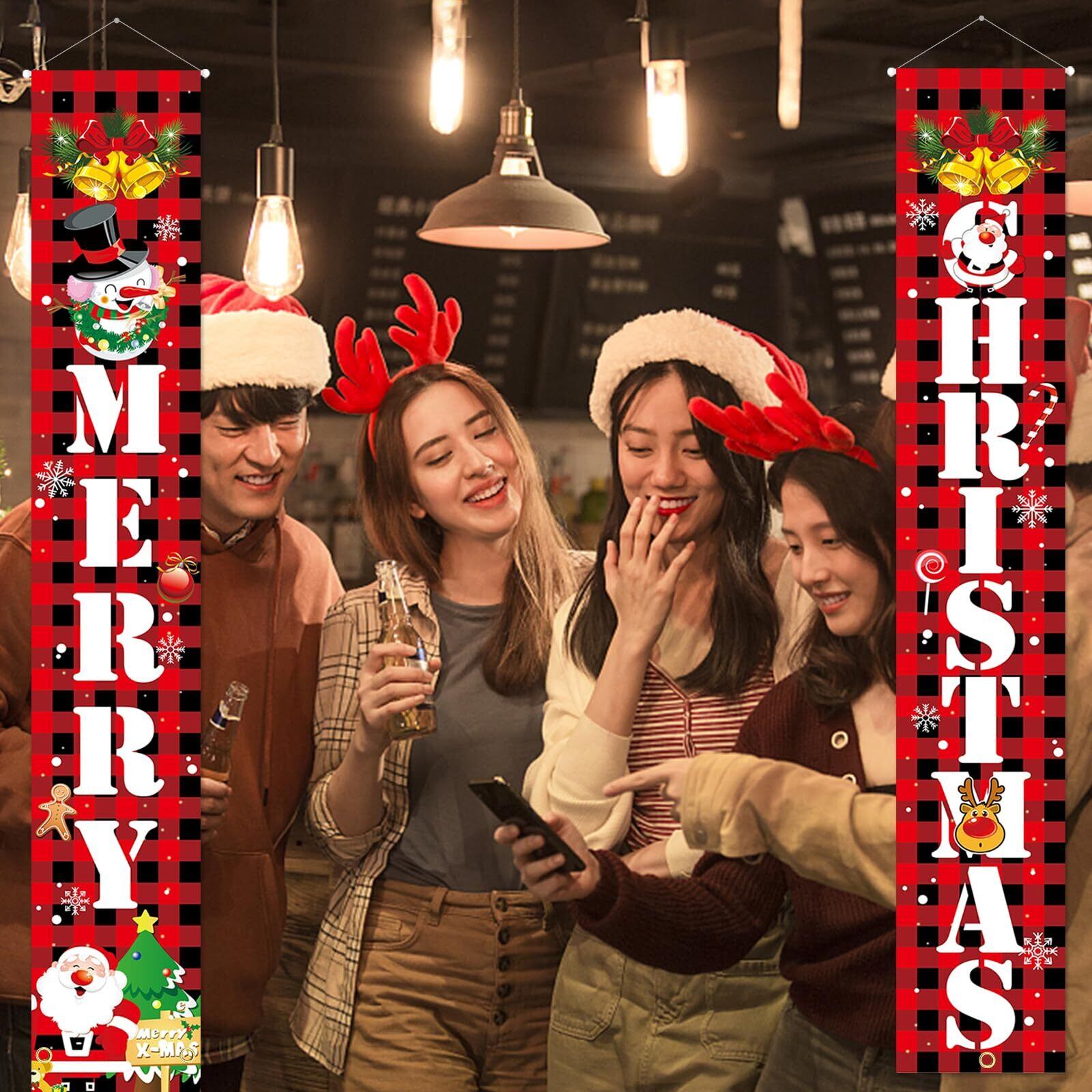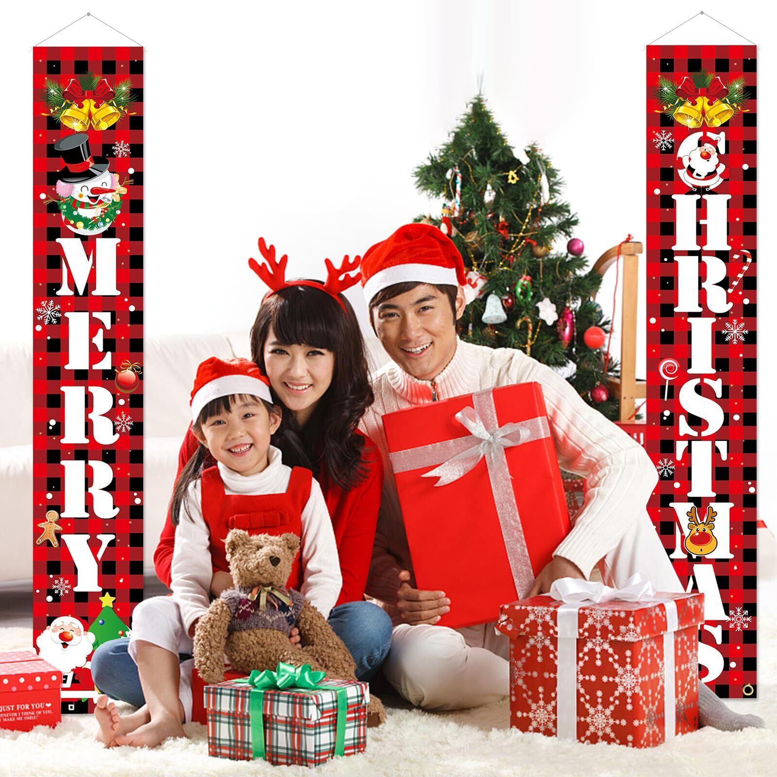 【特価セール】Paready クリスマス 玄関飾り 取り付け具 付き Merry Christmas ポスター 長尺 タペストリー ドアバナー 玄関 装飾 クリスマス 飾り クリスマスデコレーション 壁掛け カーテン フラッグ 吊り下げ 屋内 屋外 サンタ | gsmshop