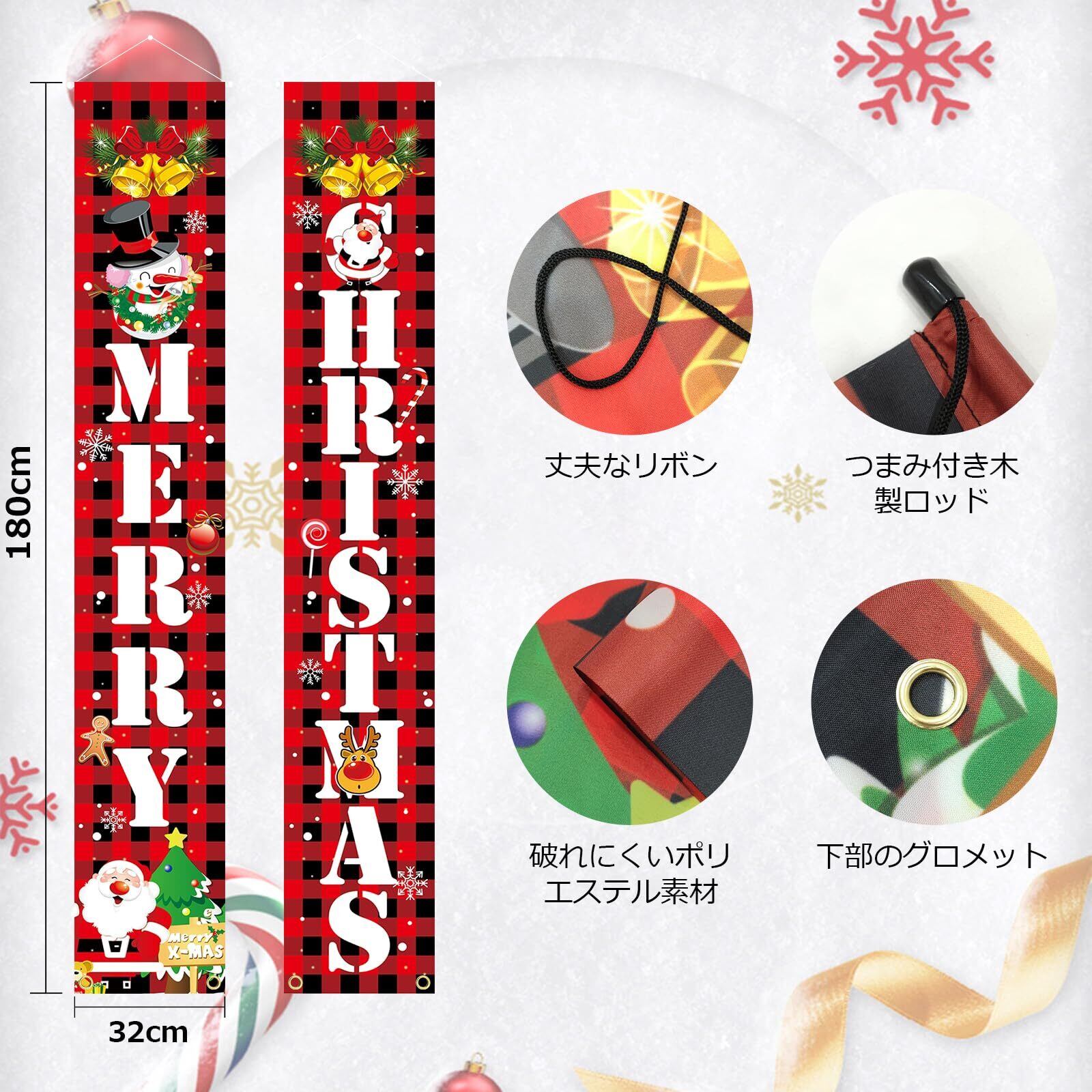 Paready クリスマス 玄関飾り 取り付け具 付き Merry Christmas ポスター 長尺 タペストリー ドアバナー 玄関 装飾 クリスマス 飾り クリスマスデコレーション 壁掛け カーテン フラッグ 吊り下げ 屋内 屋外 サンタ