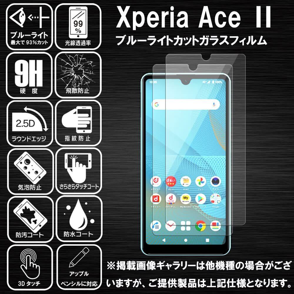 【ブルーライトカット 93%】2枚 RISE ガラスフィルム フィルム Xperia Ace II SO-41B Xperia Ace 2 SO-41B 用 保護フィルム 強化 ガラス 透過率99% 高光沢 日本製 旭硝子 硬度9H 2.5Dラウンドエッジ 自動吸着 気泡ゼロ 飛散防止 指紋防止 撥水撥油 3D タッチ For Xperia Ace II