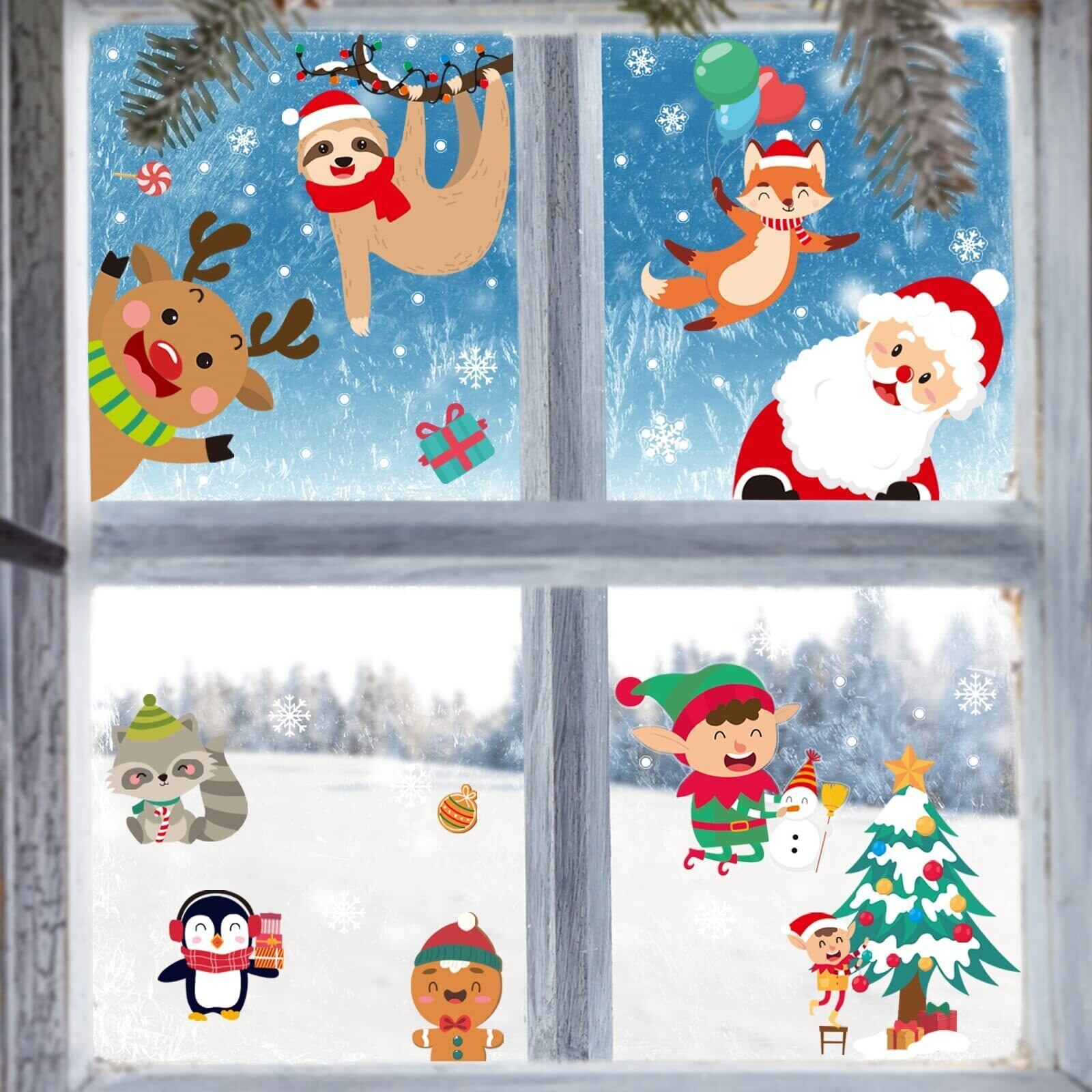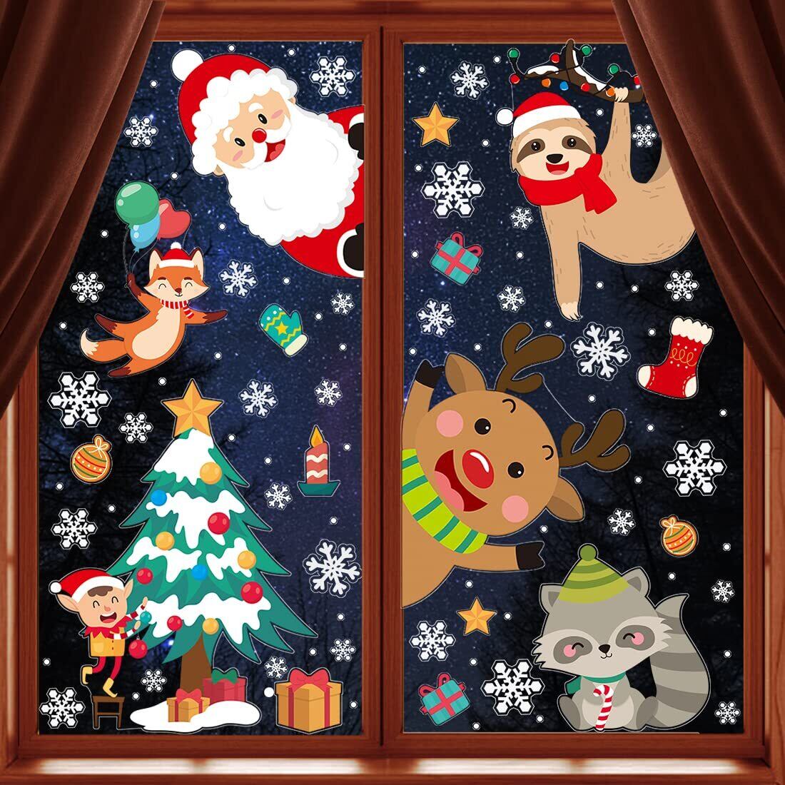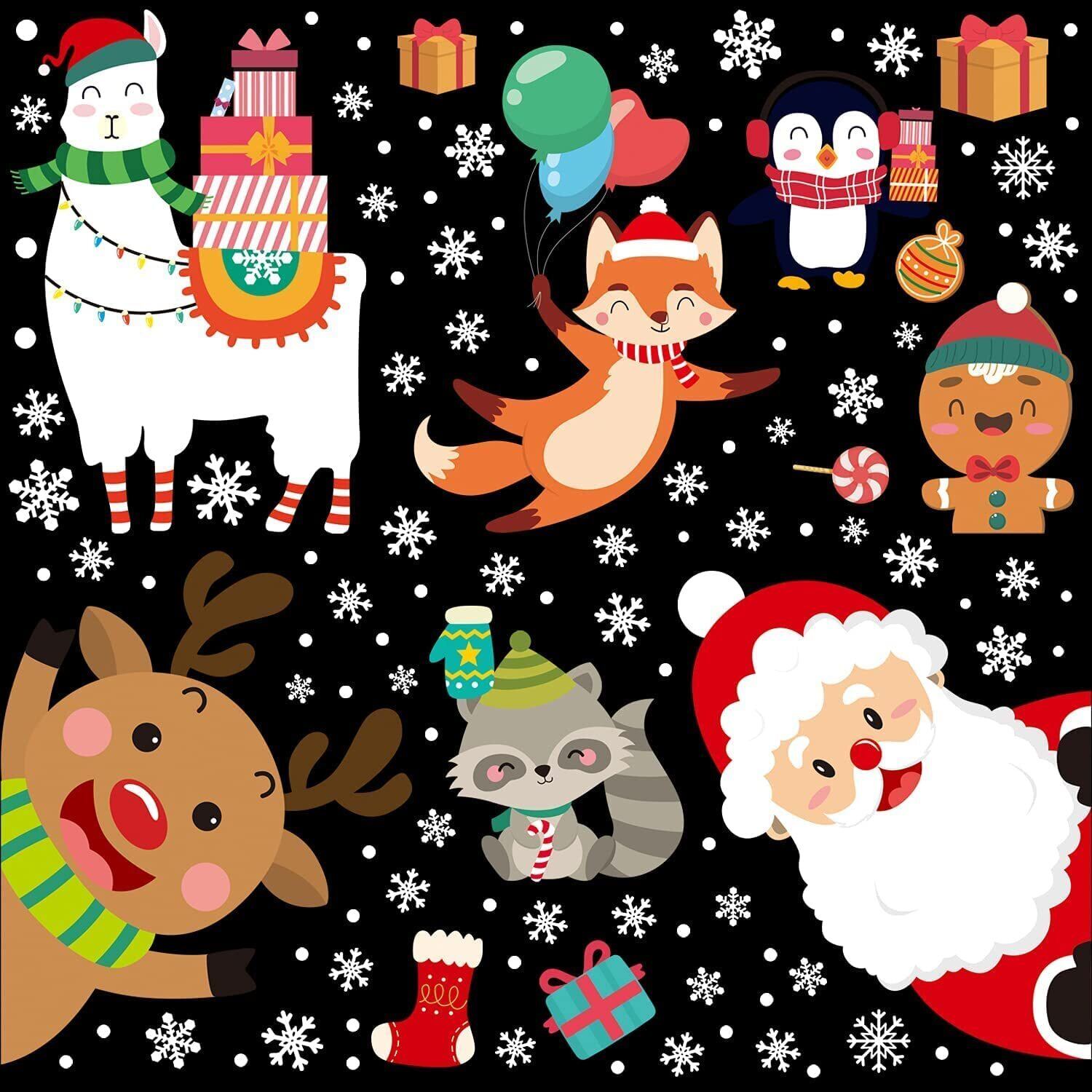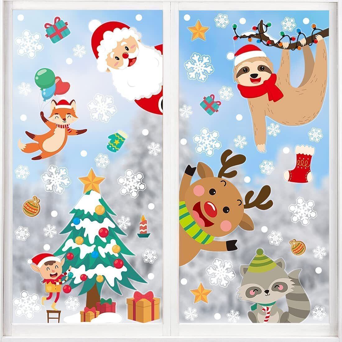 CINECE クリスマス ステッカー 飾り 両面 ガラス 窓 静電気 シール 305pcs 防水 DIY デコレーション 汚れない 剥がせる Christmas 鹿 キツネ (4)