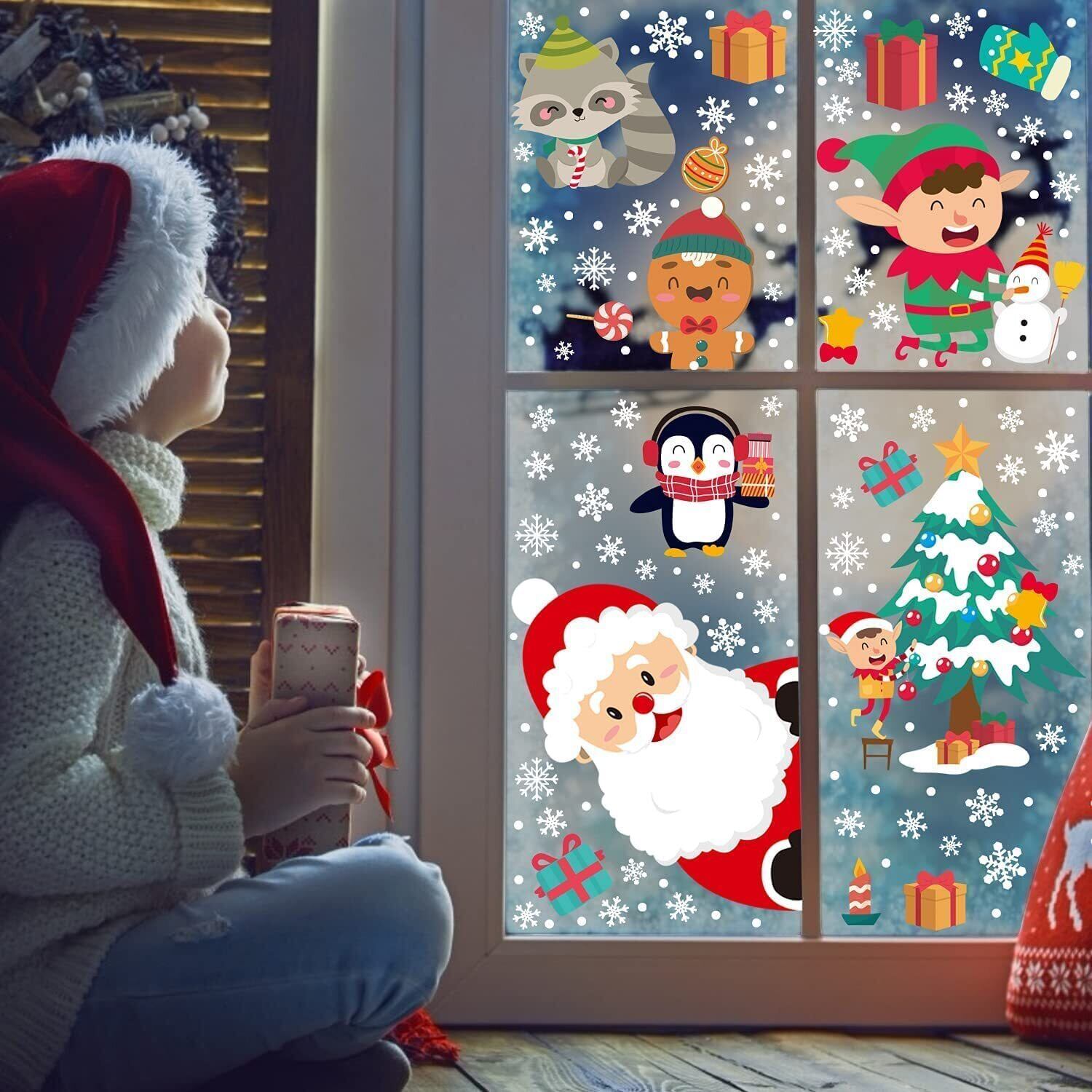 【新春セール】CINECE クリスマス ステッカー 飾り 両面 ガラス 窓 静電気 シール 305pcs 防水 DIY デコレーション 汚れない 剥がせる Christmas 鹿 キツネ (4) | gsmshop