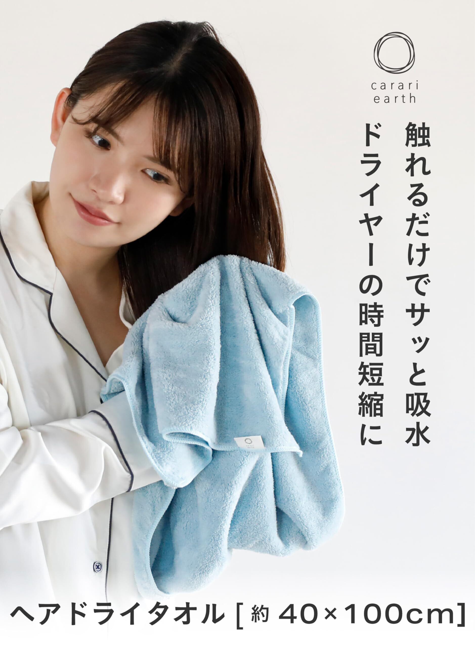 【特価セール】【 限定】 シービージャパン(CB JAPAN) carari(カラリ) ヘアドライタオル 吸水力[4倍]のマイクロファイバー earth ブルー 3枚組 繊維の隙間に素早く吸水 速乾 マシュマロ肌触り ふわふわもちもち 40×100cmカラリアース | gsmshop