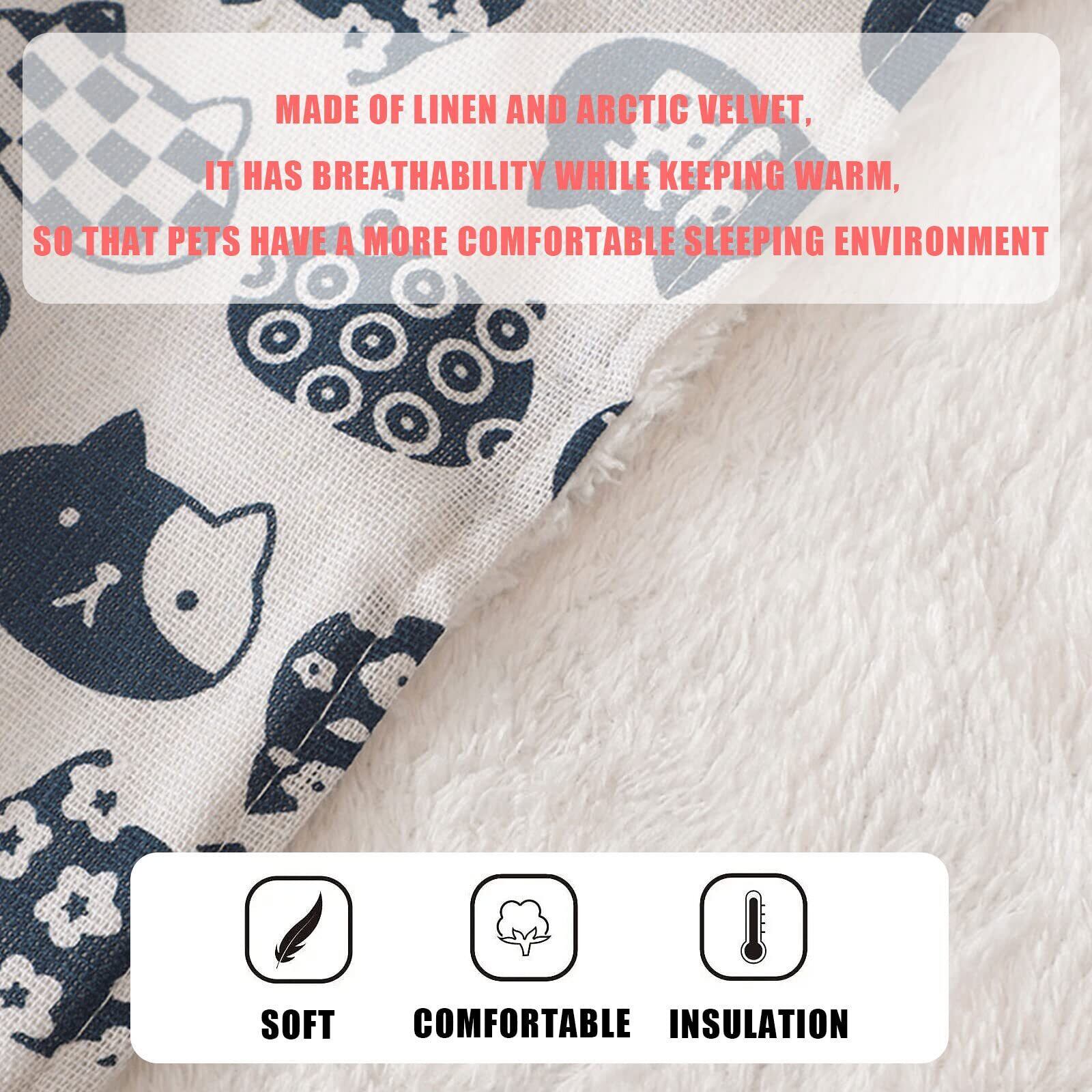 キャンバス生地と起毛生地で作られた猫用ハンモックです。リバーシブルのハンモックは夏でも冬でもご利用いただけます。キャンバス生地は通気性が良いので夏に適しています。起毛素材は柔らかくて保温性に優れるので、寒い時期でも猫が快適に過ごせます。