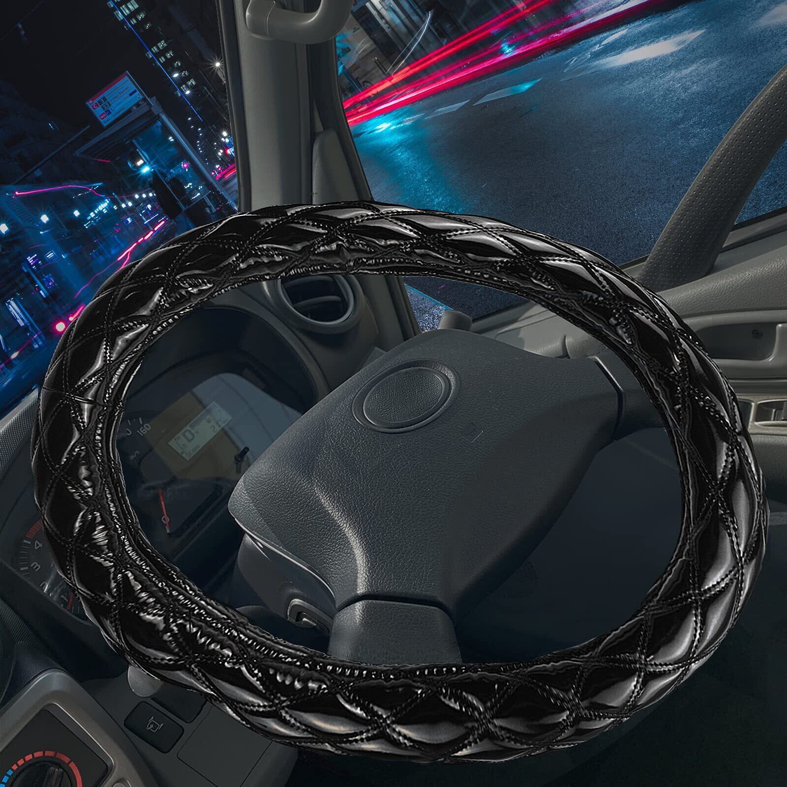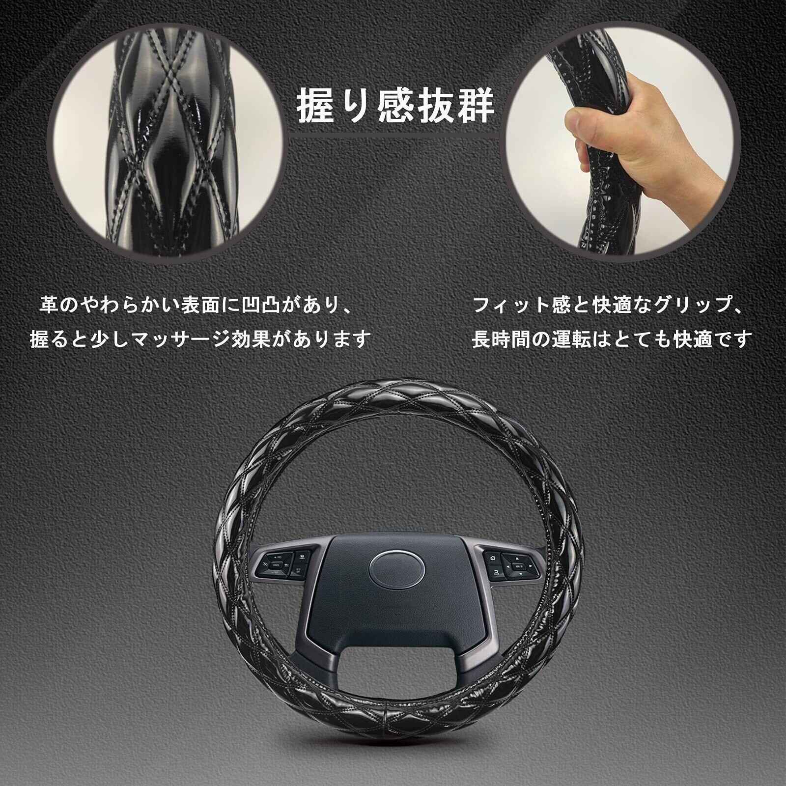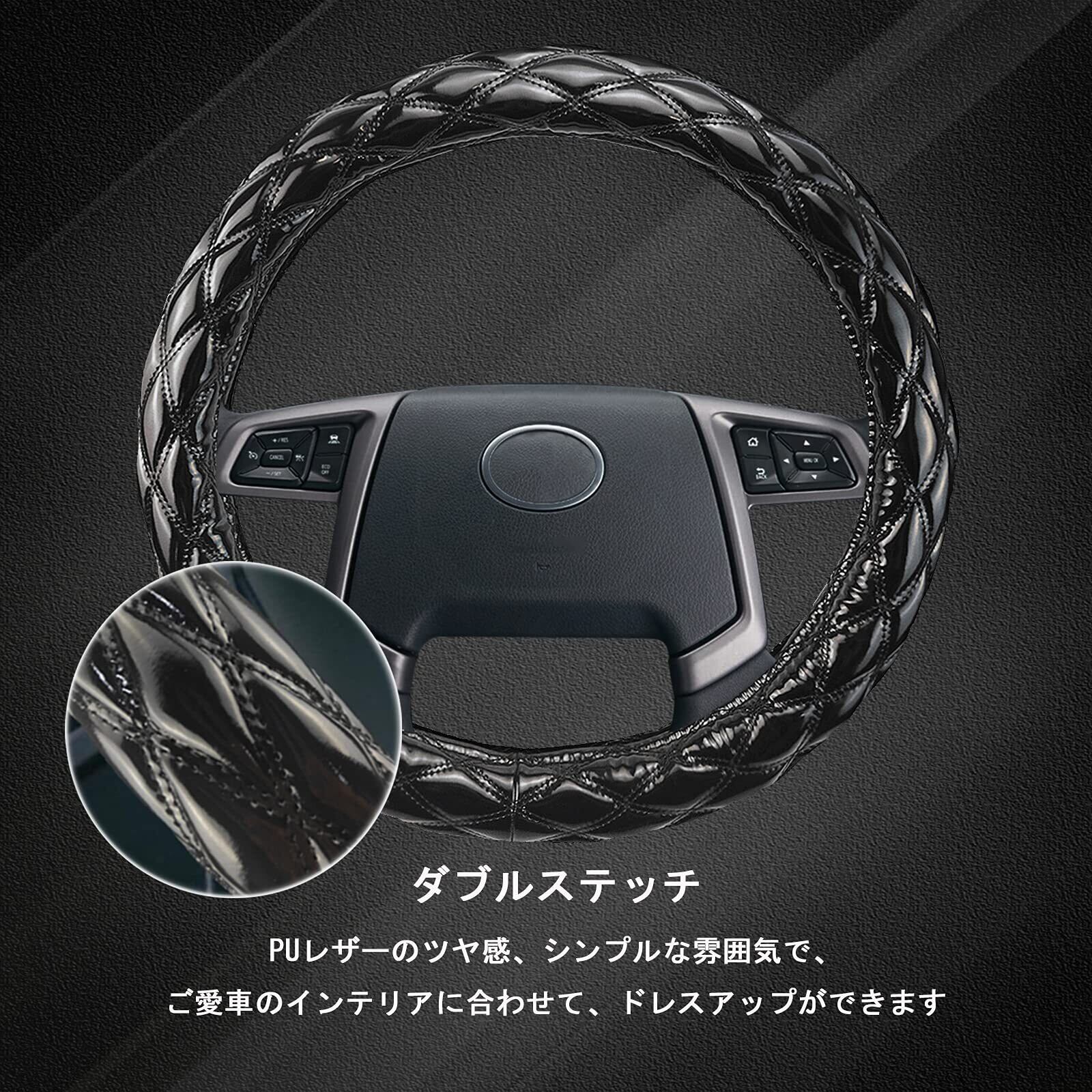ZATOOTO 極太 ハンドルカバー トラック 2HS(45~46cm) ダブルステッチ 握り感 汚れ防止 トラック用品 ステアリングカバー 柔らかい 快適 デザイン感 艶あり ブラックxブラック LY35-B