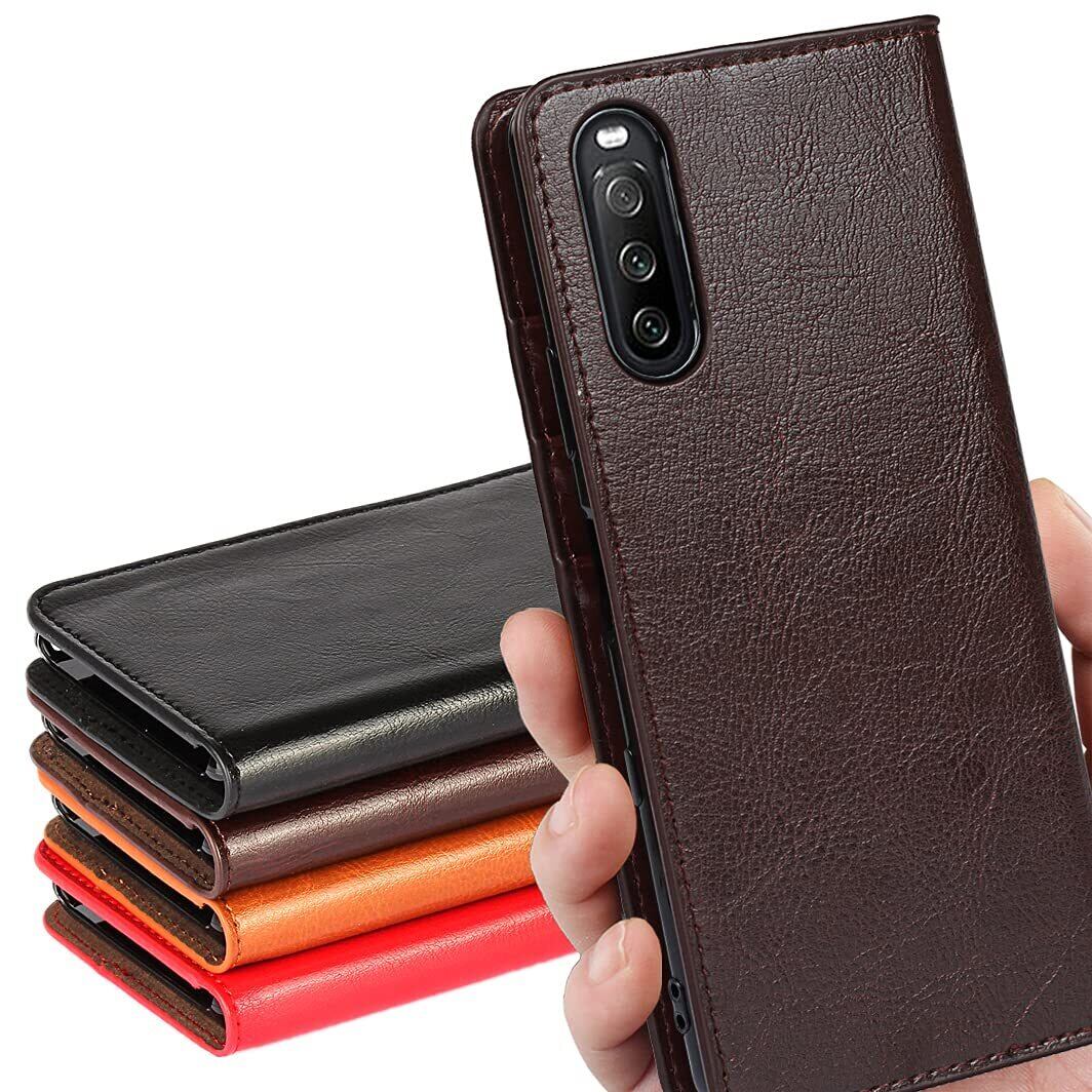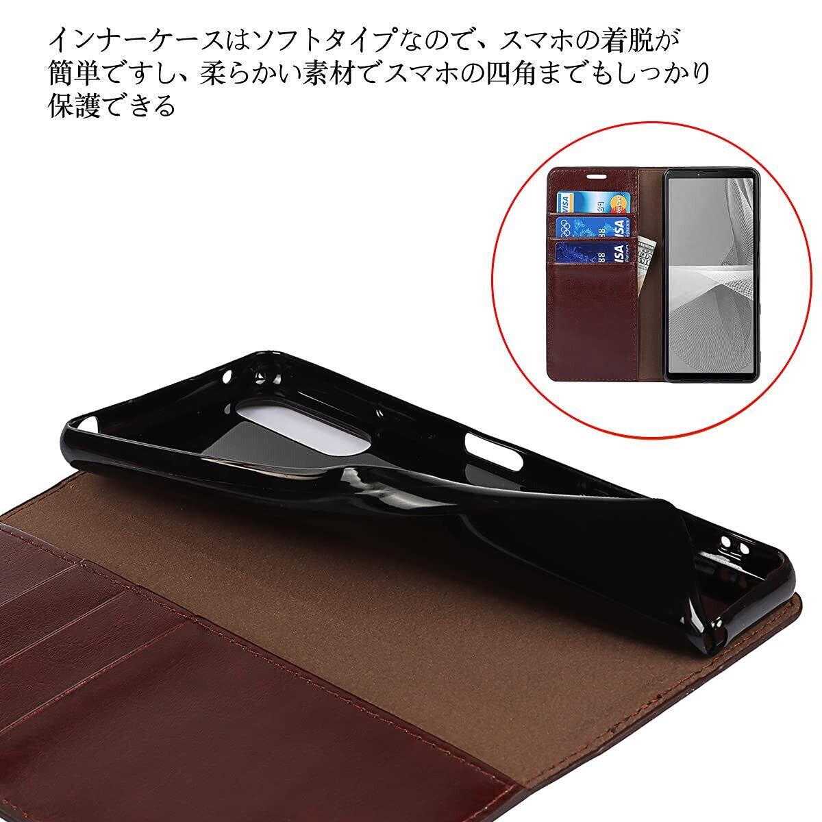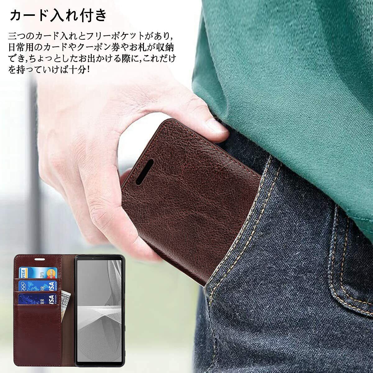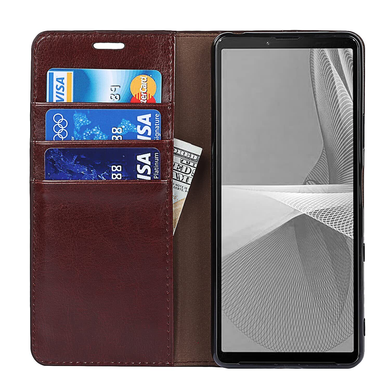 Xperia10 lll ケース 手帳型 【マグネット無し】 Xperia10III lite 通用 ソニー Xperia 10 III カバー Xperia10 III ケース SO-52B docomo / SOG04 au / A102SO 対応 Xperia 10 III lite 楽天モバイル SIMフリー 全対応 xperia10iii ケース SO52B カバー ソニー エクスぺリア Xperia10 III 手帳型 エクスぺリア10 III スマホケース 携帯カバー case 適用 【iCoverCase】 マグネットなし レトロ スタンド機能 手作り 光沢加工 牛革 スマホケース 財布型 携帯カバー カード入れ 耐久性 摩擦耐性 スマホケース ダークブラウン