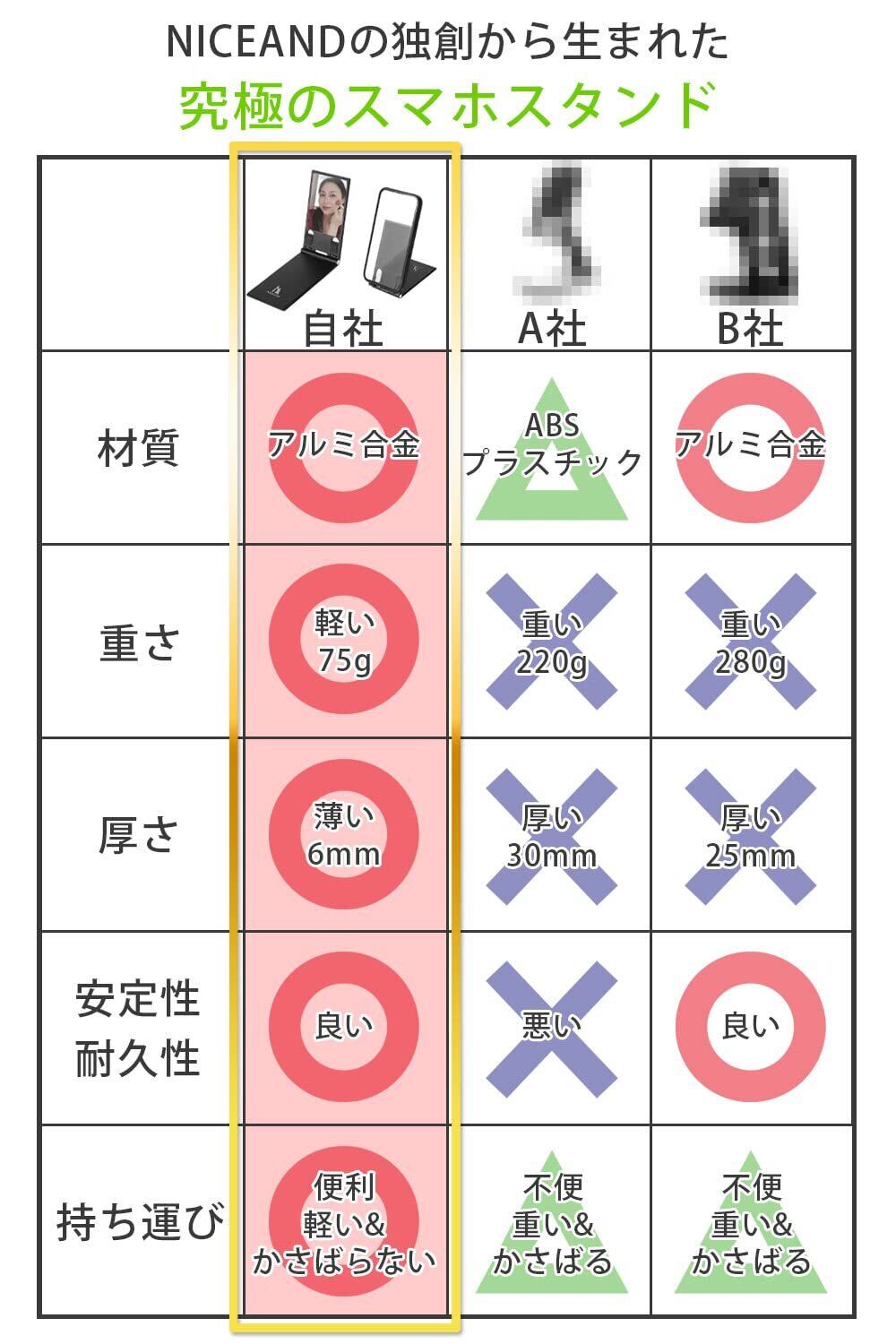 NICEAND アルミ製スマホスタンド 折りたたみ式 軽量 ミラー付き 卓上用 ブラック NA-001