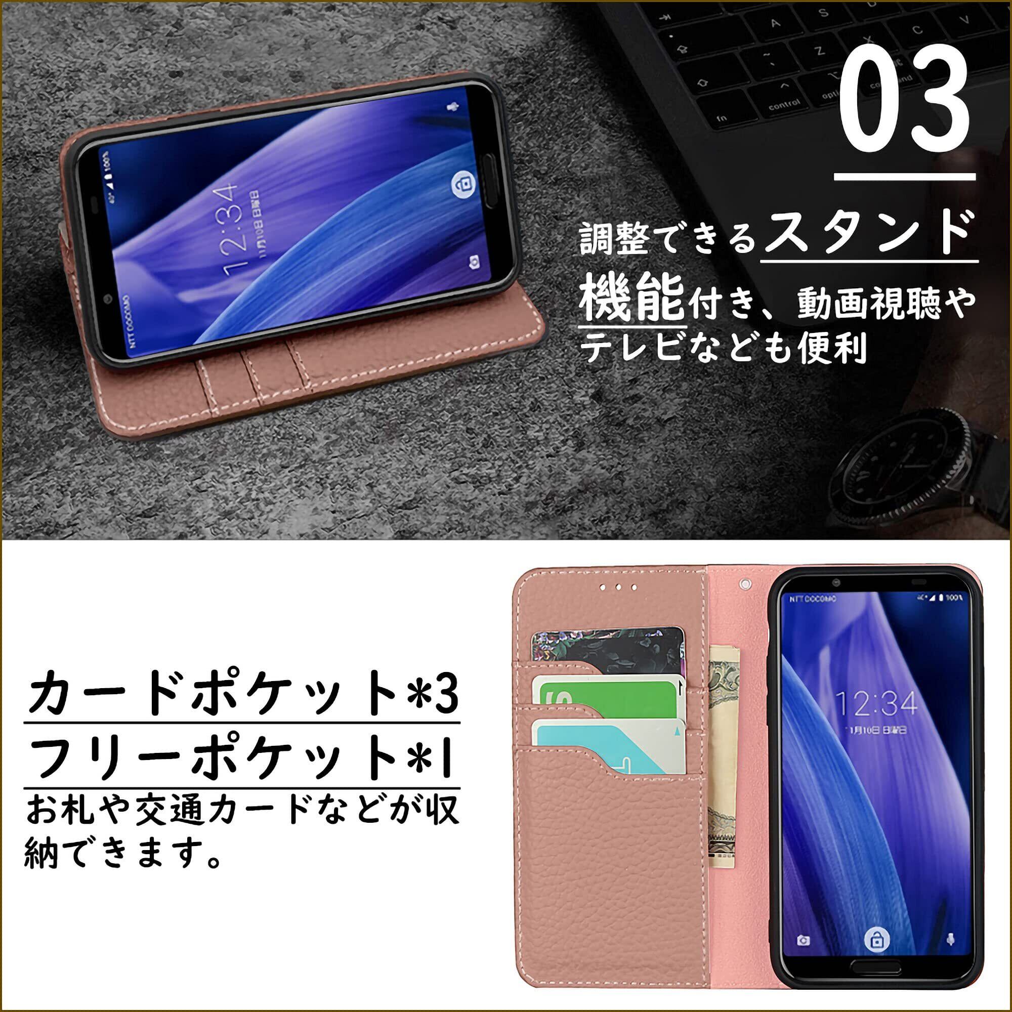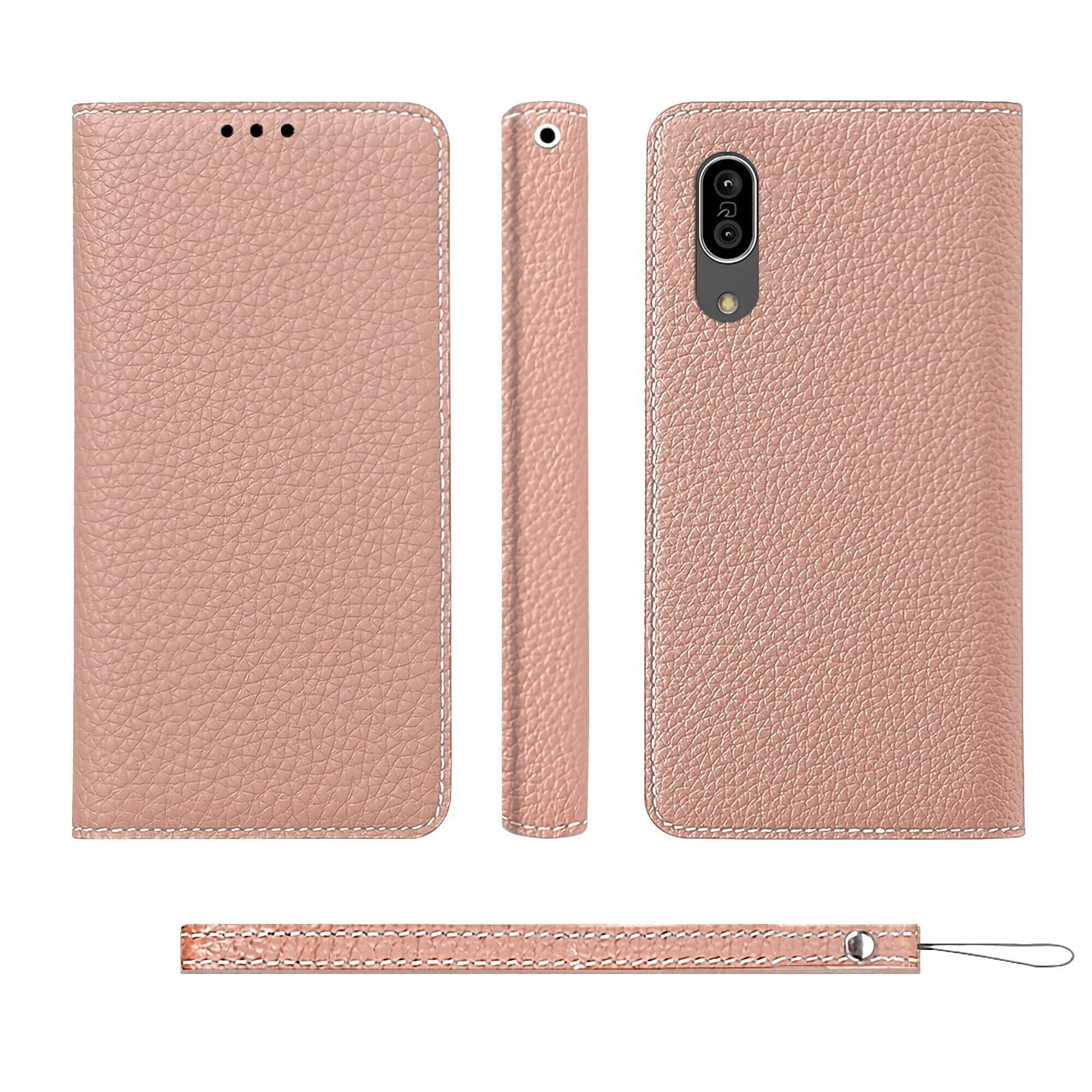 CLICSUN AQUOS sense3 対応ケース 高級牛本革ケース 手帳型 sense3 lite SH-02M SHV45 sense3 basic用 Android One S7 兼用 アクオス センス3/アンドロイドワン S7対応 カバー 本革 レザー カバー スタンド機能 ストラップ付き マグネット式 カードポケット ギフトボックス付き ピンク