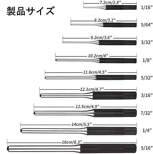 ピンポンチ センターポンチ ピン抜き クロム合金 ハンマー付き 収納袋付 1.5~8mm 9種類 工具 DIY 修理 メンテナンス
