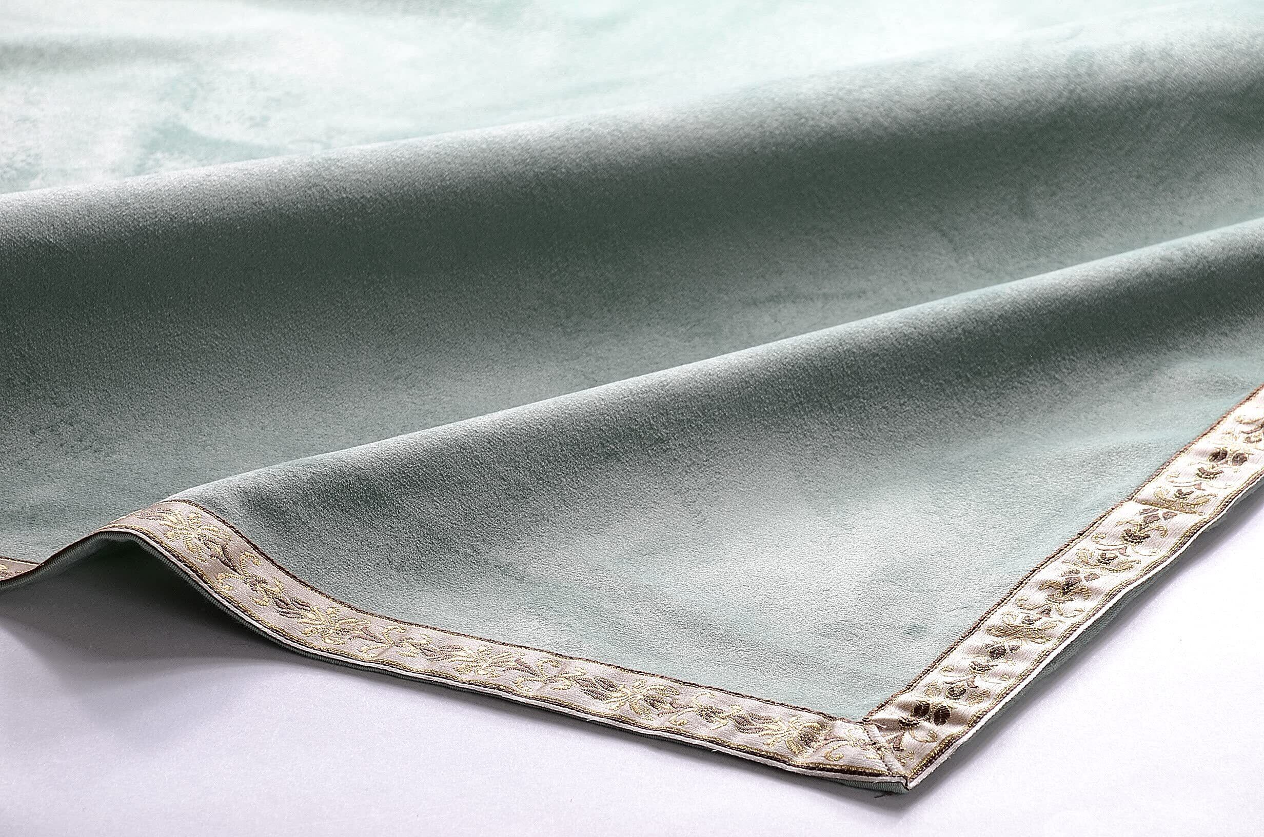 Kuai タロットクロス パステルカラー 68×68cm 2点セット ベルベット ポーチ付 タロット カード 占い 鑑定 厚手 (ライトモスグリーン+ゴールドリボン, 3点セット ポーチ大、小付)