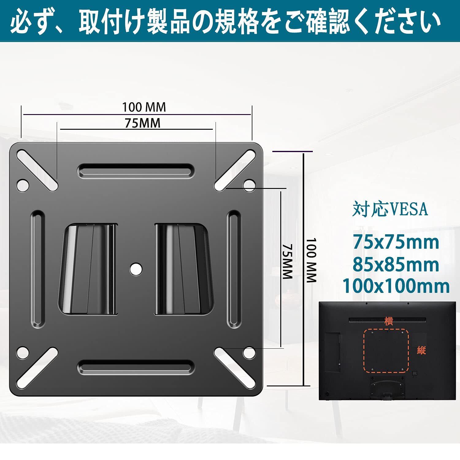 【幅広く対応-テレビ壁掛け】VESA規格(テレビ背面のネジ穴の間隔):幅75~100mm 、高さ75~100mm。テレビ用ブラケットはVESA75X75mm、100X75mm、100X100mm。