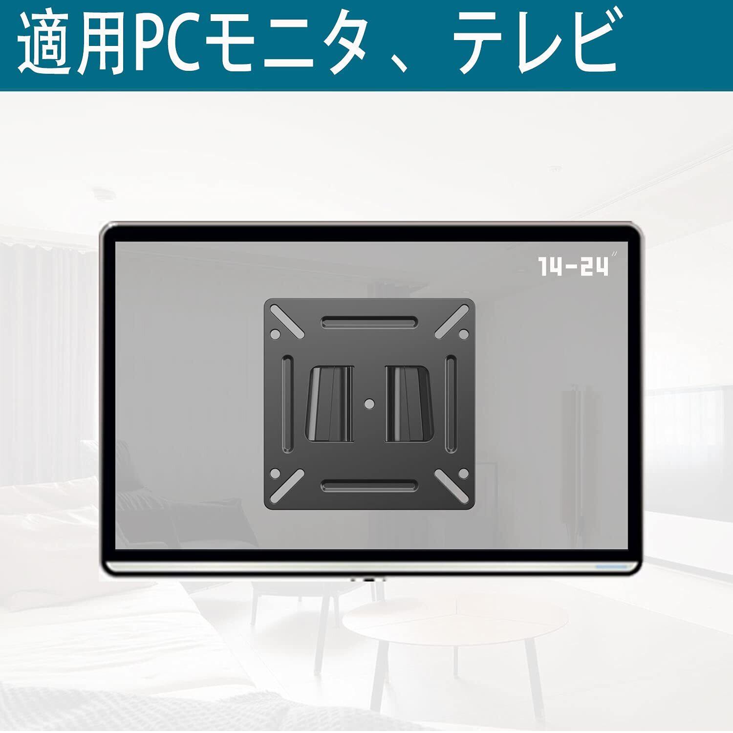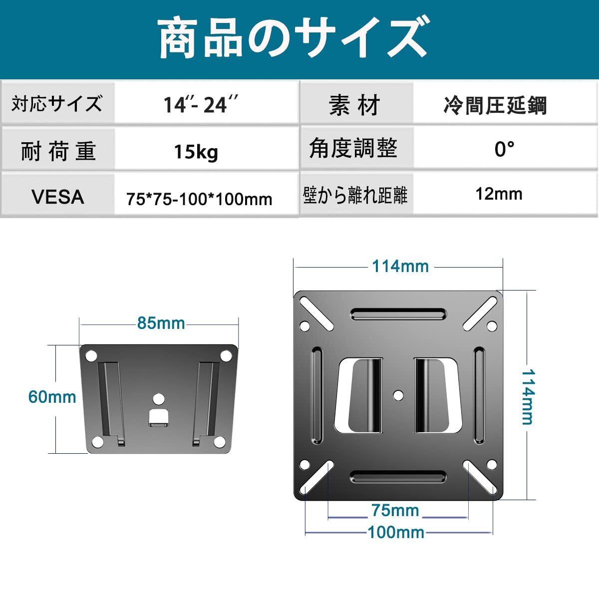 TETVIK テレビ 壁掛け金具14~24インチ液晶テレビ・PCモニター用 薄型固定式ビス付き 対応VESA規格100X100mm 耐荷重15KG モニター かべかけ 金具