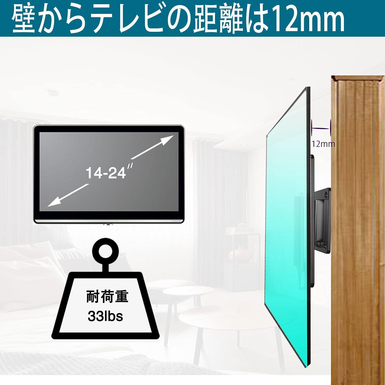 【在庫処分】TETVIK テレビ 壁掛け金具14~24インチ液晶テレビ・PCモニター用 薄型固定式ビス付き 対応VESA規格100X100mm 耐荷重15KG モニター かべかけ 金具 | gsmshop