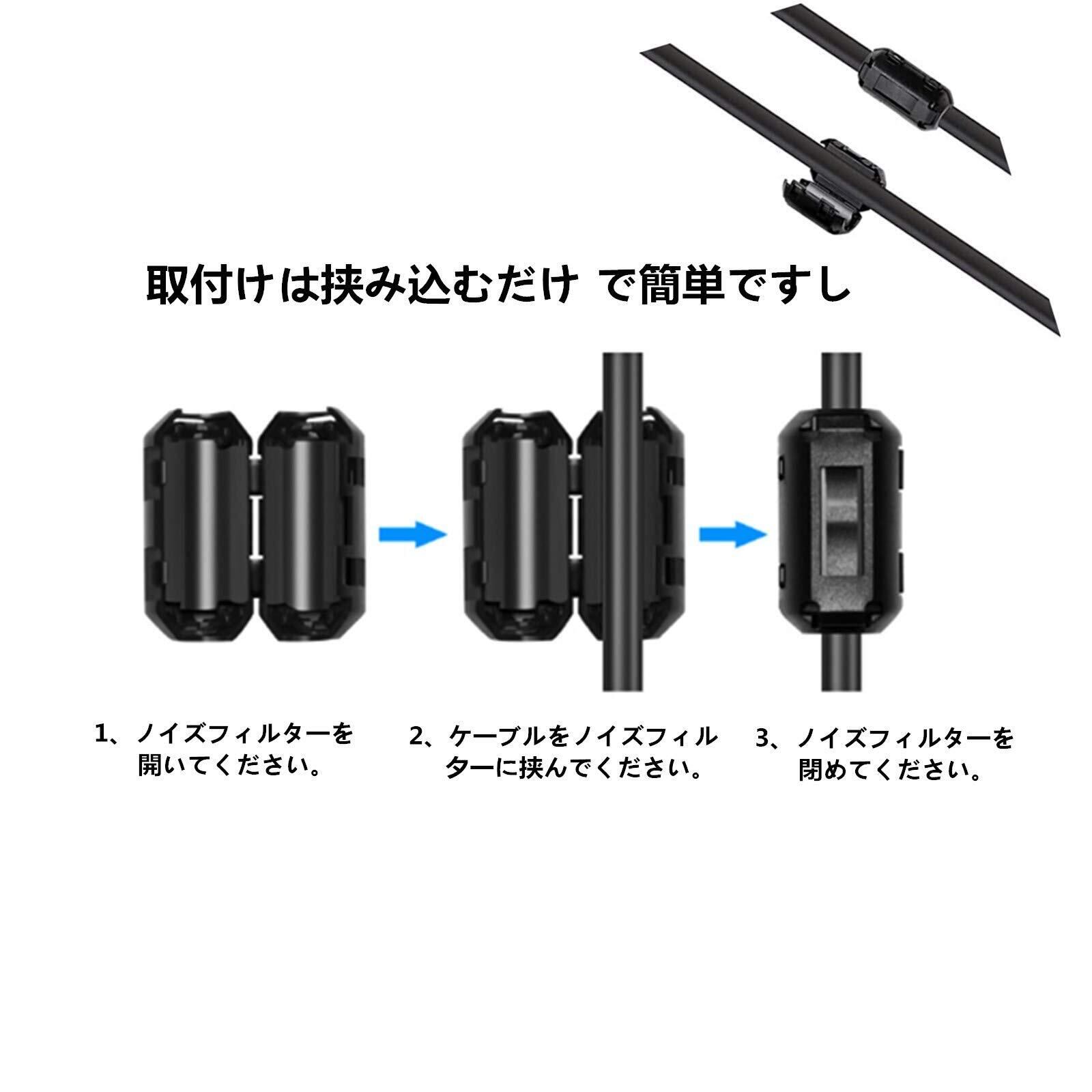 【注意】高密度フェライトコア採用によりケーブルにのる高周波ノイズを大幅にカット。1個取り付けてノイズが残る場合には複数個取り付けると効果がある場合もございます。