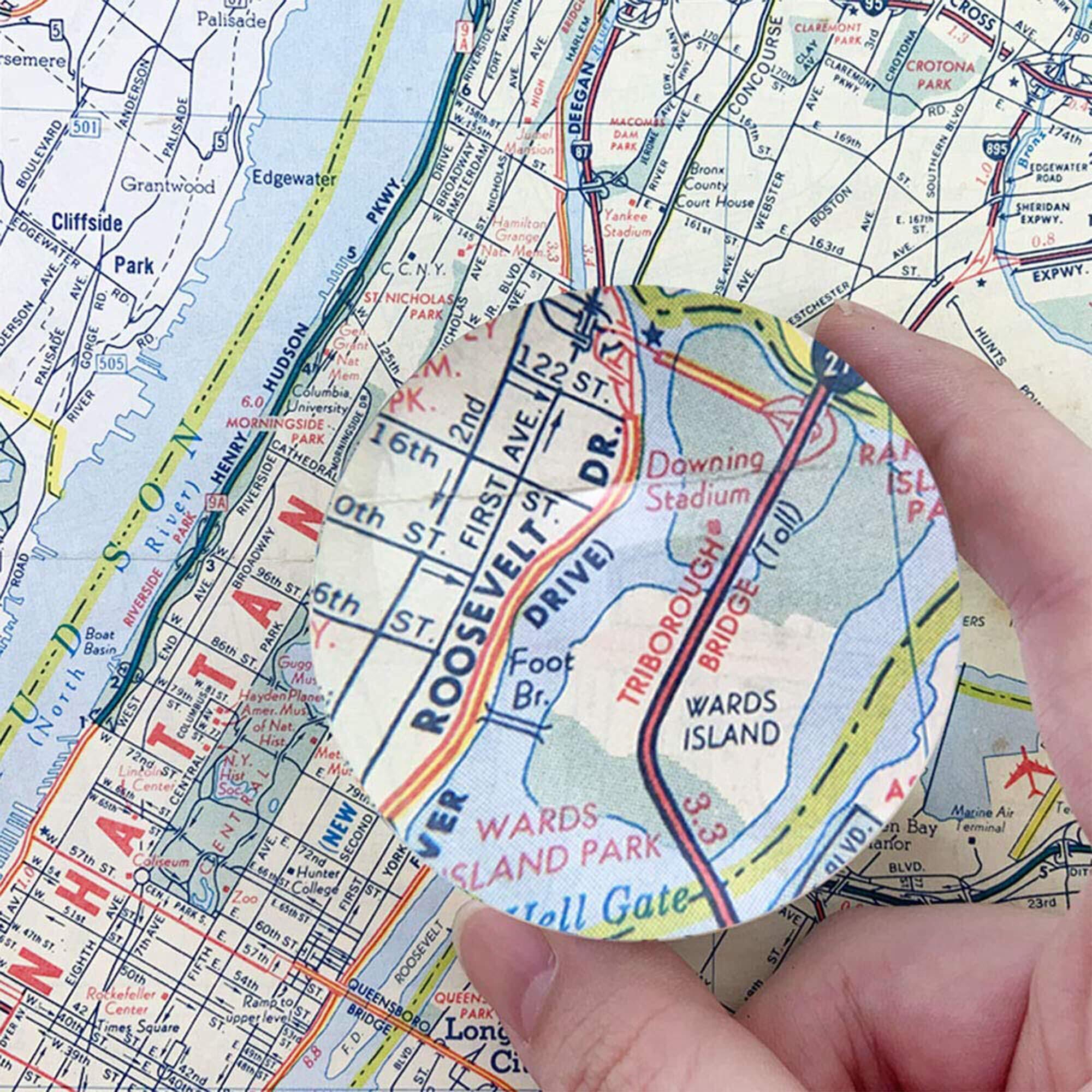 【ハンズフリー】ルーペペーパーウエイト 新聞や書類などの上に置くだけで使用できます。わずらわしいピント合わせは必要ありません。持ち運びに便利な収納袋が付いています。