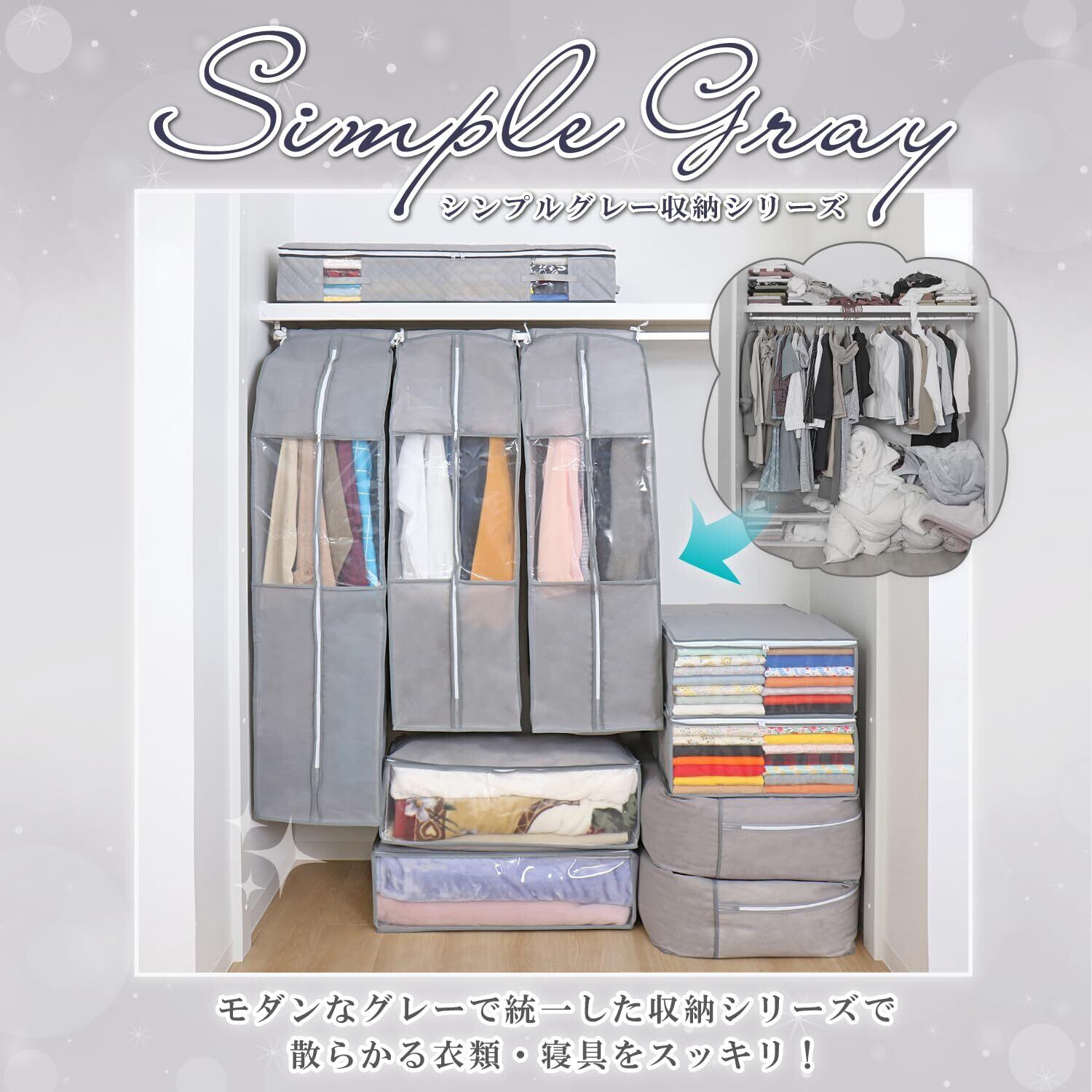 商品名:毛布保存袋2枚組 シンプルグレー