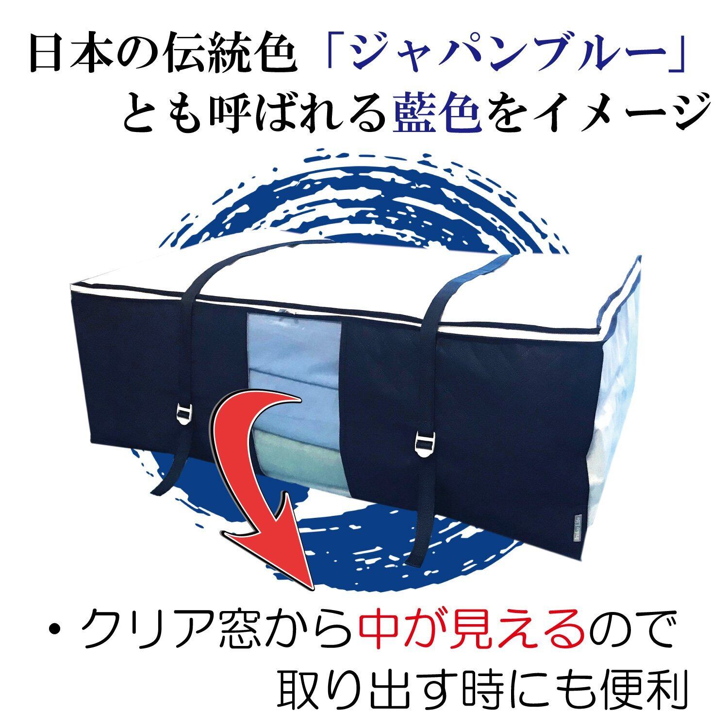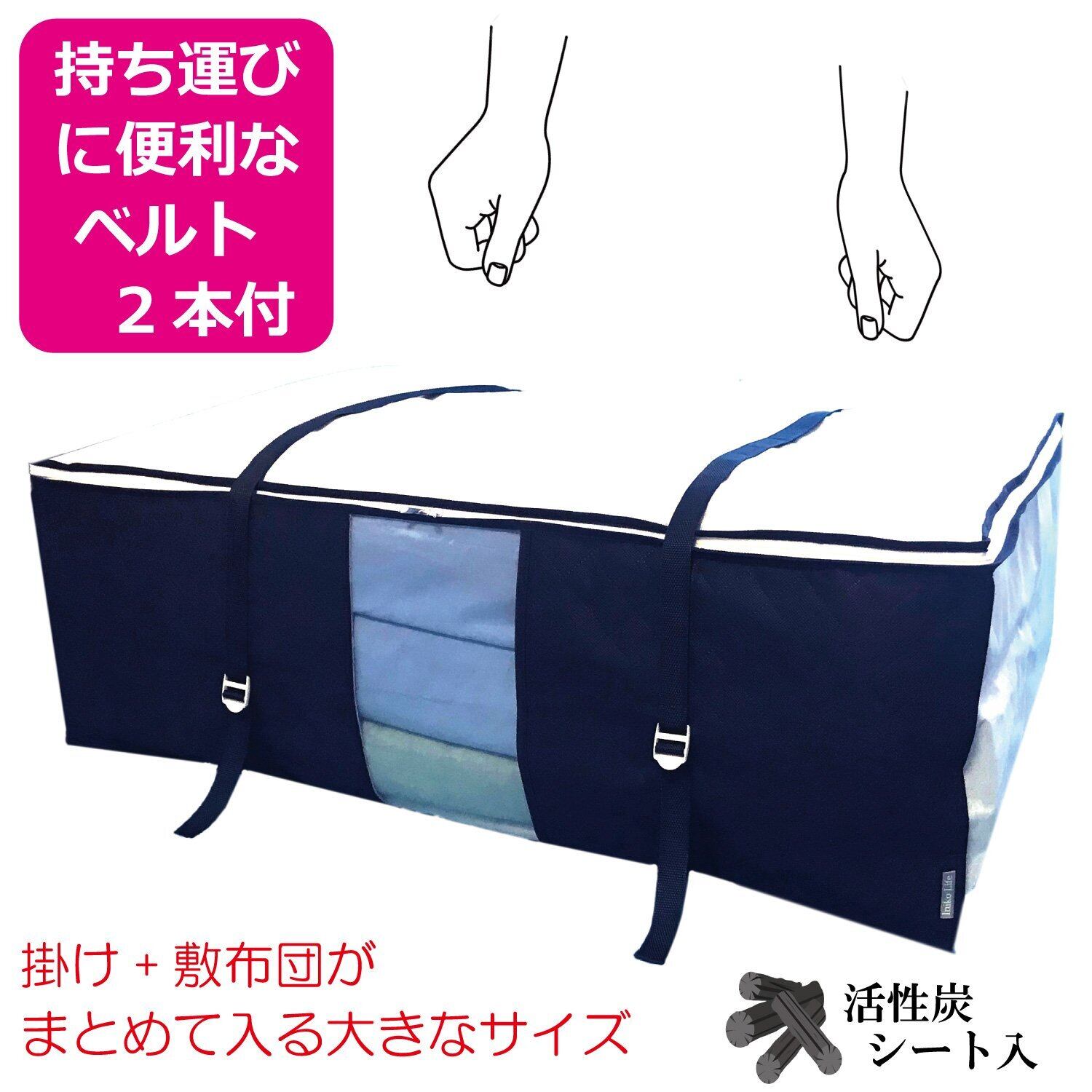 イニコライフ ふとん 収納袋 持ち運びベルト 2本付き 布団 一式 収納ケース 活性炭シート入 掛け 敷き 布団収納 大容量 持ち手 透明窓付き 引っ越しなどに 大きく開く 上部ファスナー式 不織布製 (中芯無し)
