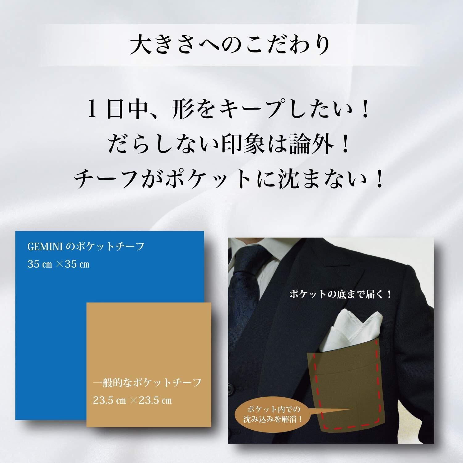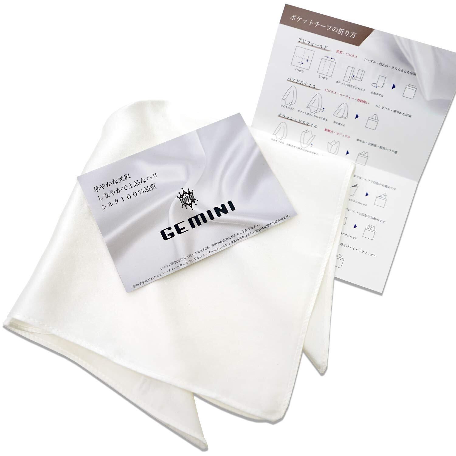 GEMINI シルク ポケットチーフ 結婚式 無地 パーティー 絹 光沢あり メンズ