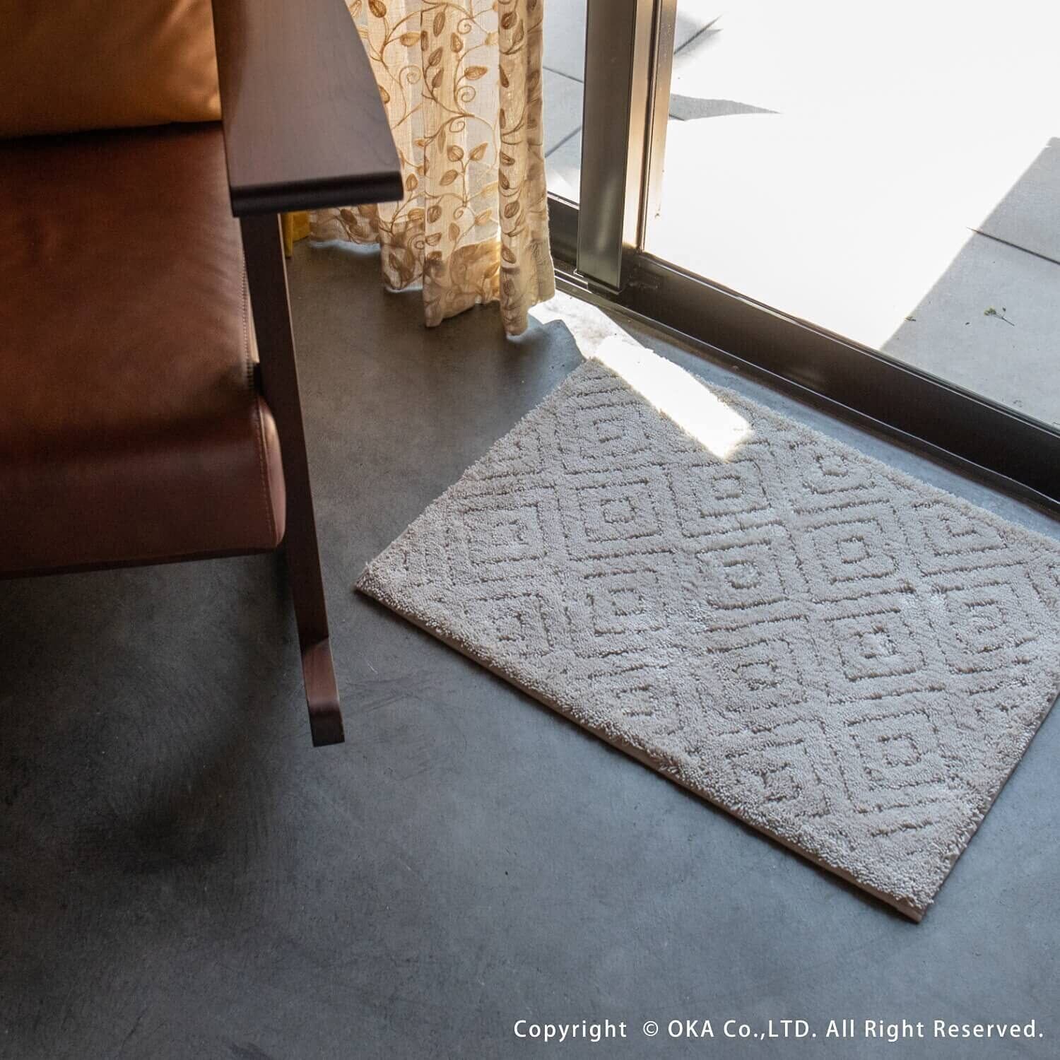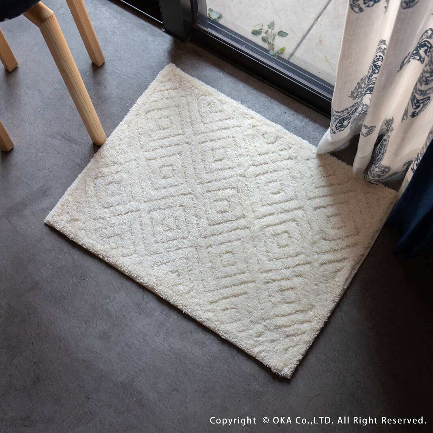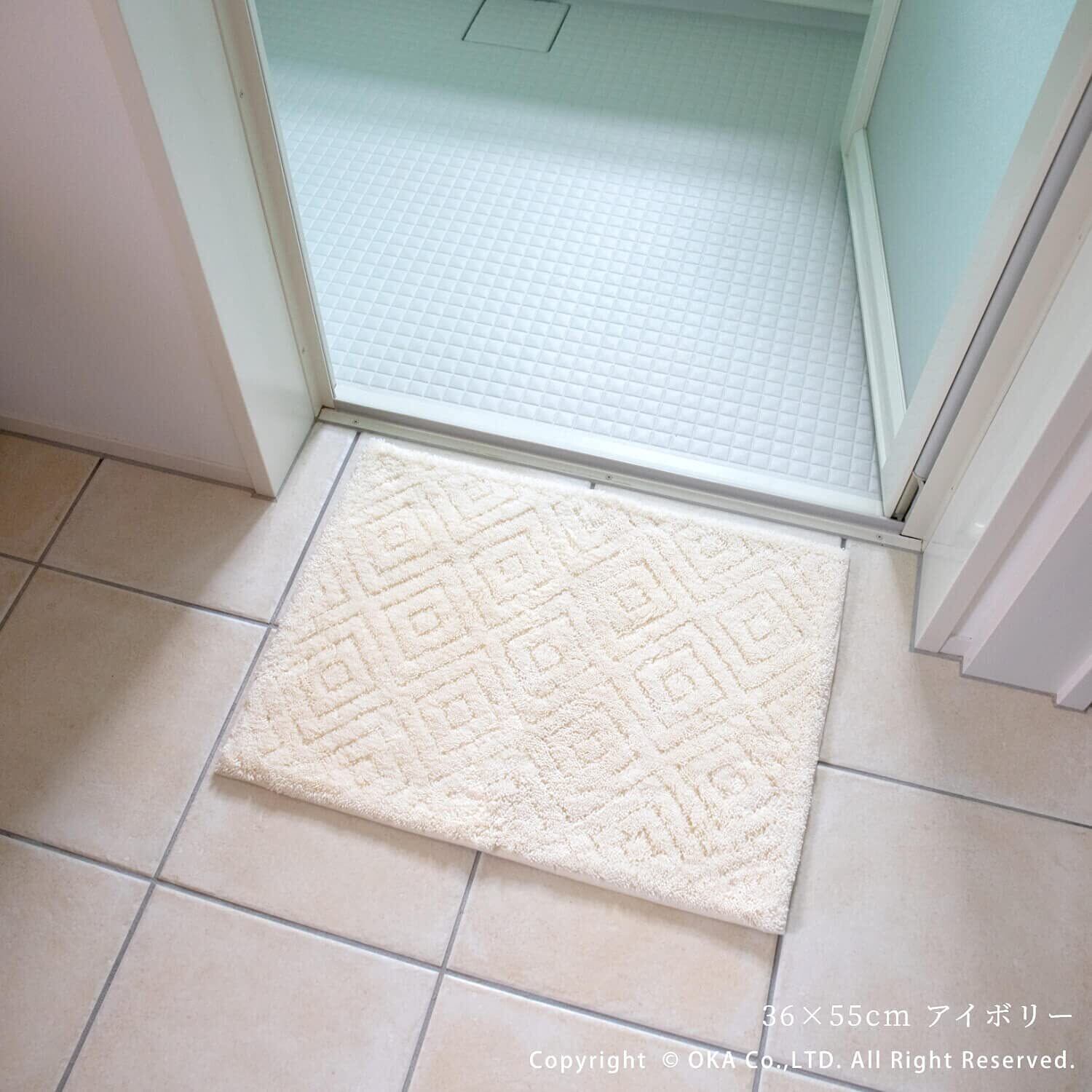 オカ(OKA) 乾度良好ピュール バスマット 約45cm×60cm アイボリー (お風呂マット 大判 浴室 おしゃれ 洗面所 足ふきマット 抗菌 防臭 吸水 速乾 洗える)