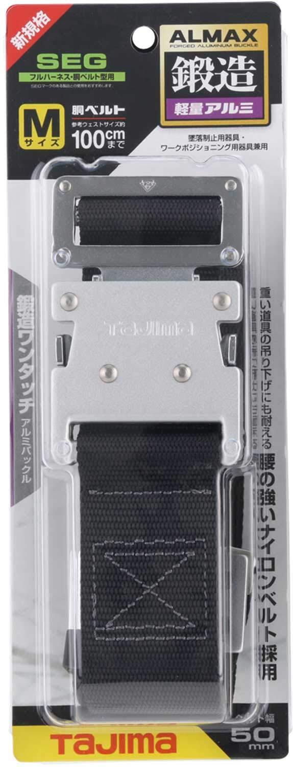 タジマ 新規格安全帯 胴ベルトMサイズ 黒 BWM125-BK 長さ125cm 衝撃や耐久に強い鍛造ワンタッチバックル 腰の強い特厚ナイロンベルト