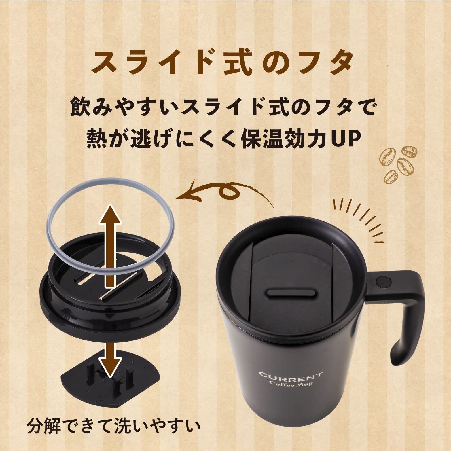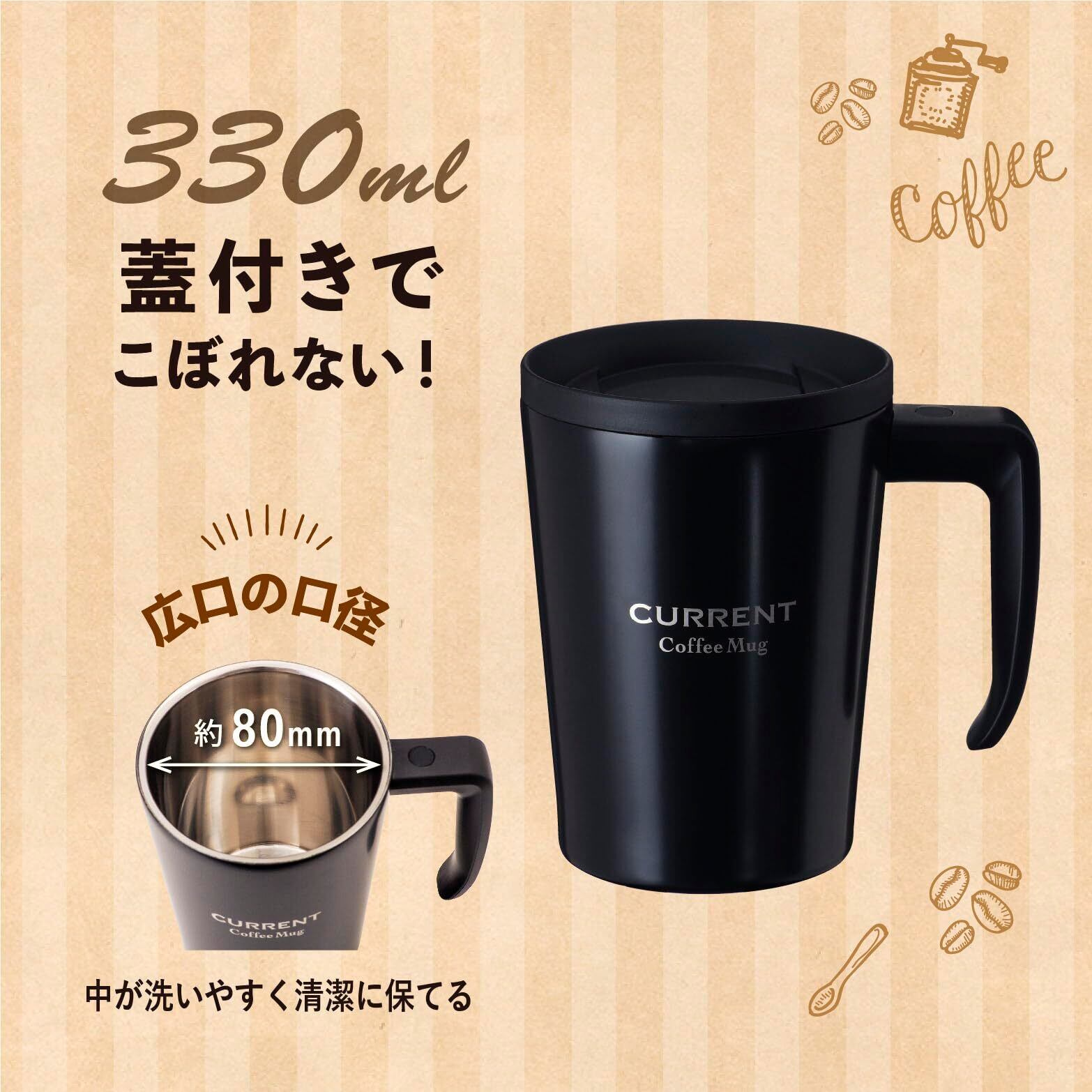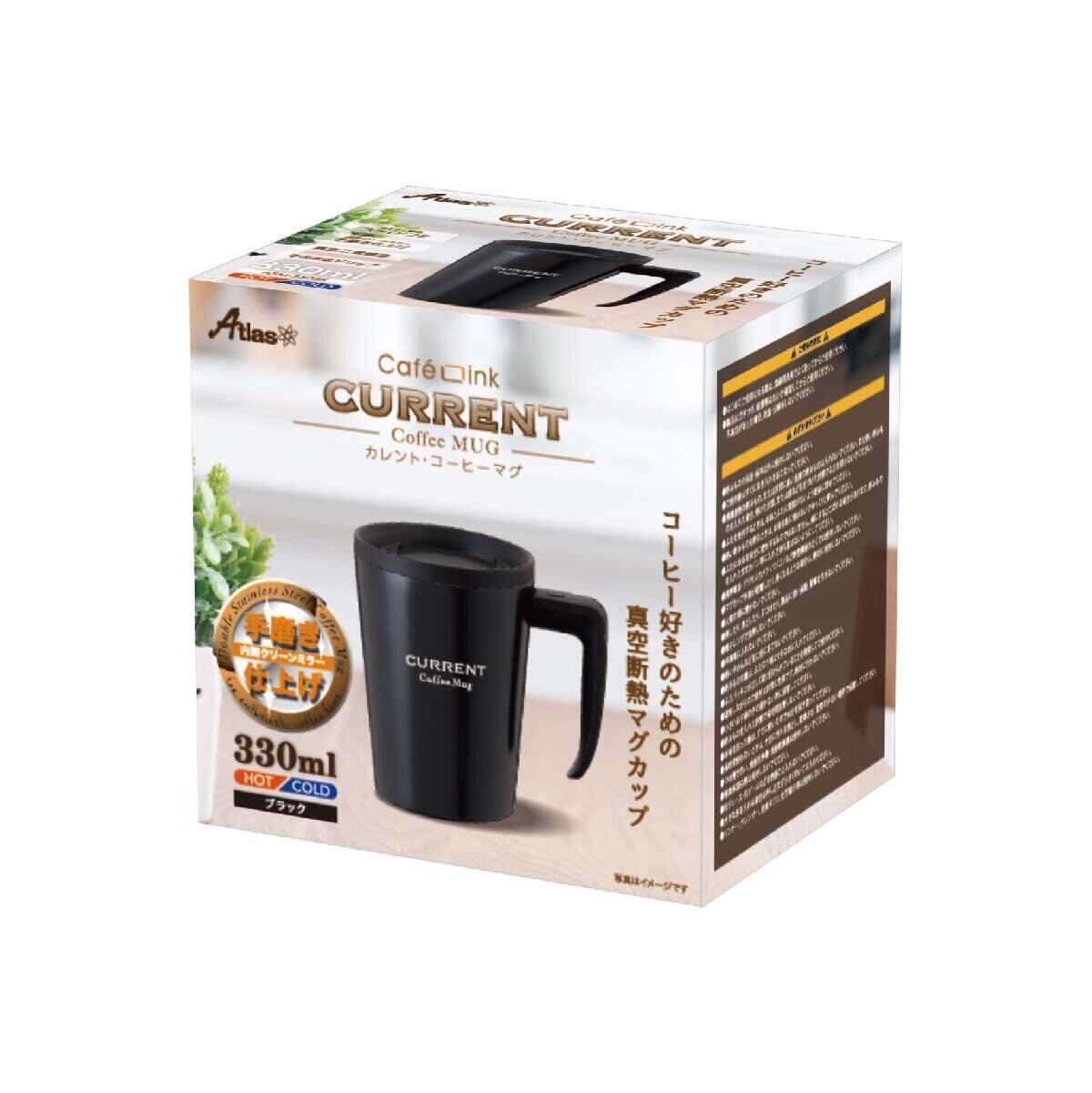 Atlas(アトラス) 真空 断熱 カフェ マグカップ 保温保冷 330ml ブラック コップ ASM-330BK